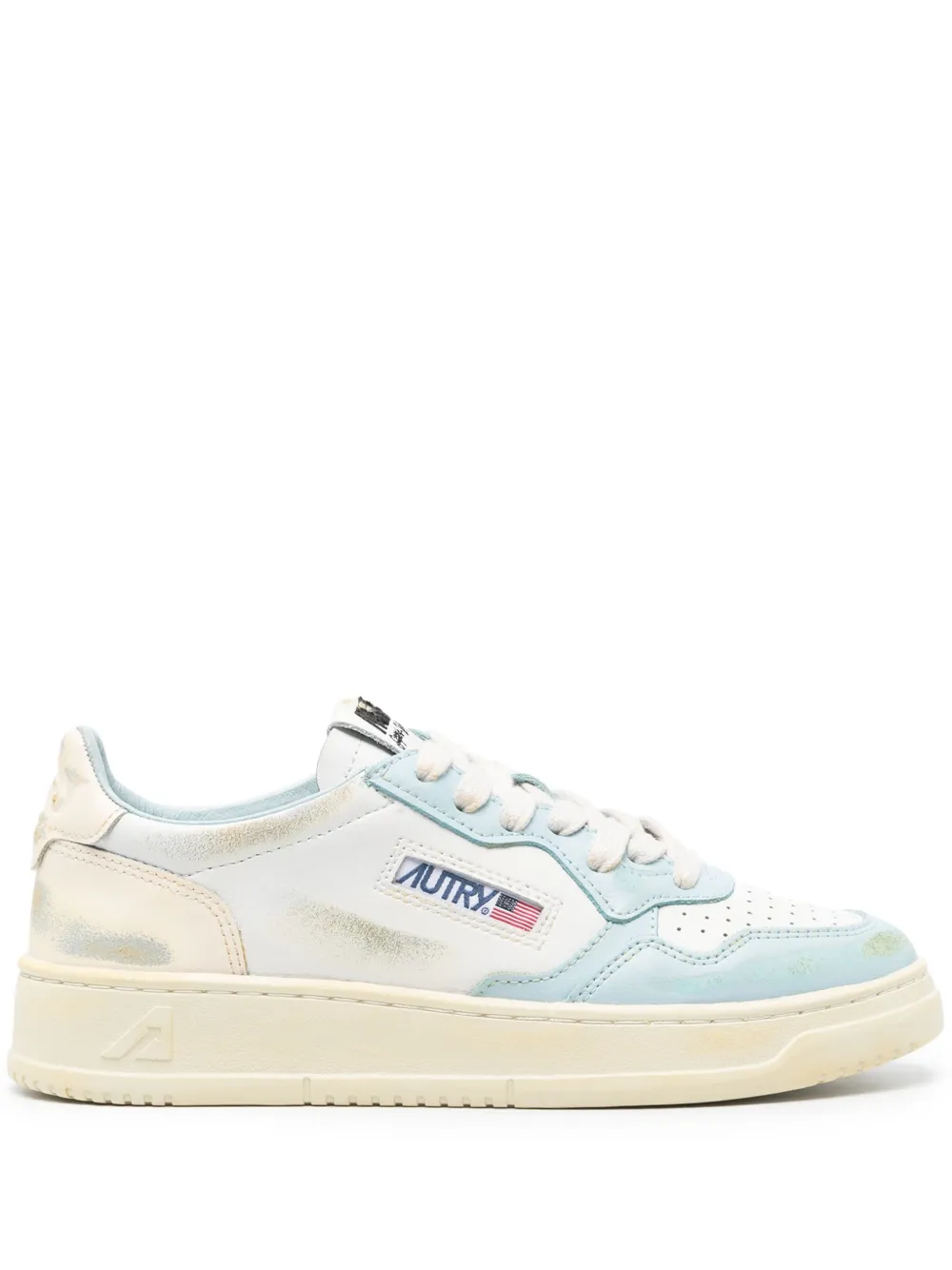 Подробнее о товаре: • белый/голубой • телячья кожа • гладкая текстура кожи • дизайн со вставками • эффект потертости • перфорированный носок • нашивка с логотипом сбоку • нашивка с логотипом на язычке • тисненый логотип сзади • тисненый логотип сбоку • логотип на подошве • закругленный носок • шнуровка спереди • кожаная стелька с логотипом • резиновая подошва • В комплект входит мешок-пыльник для хранения.