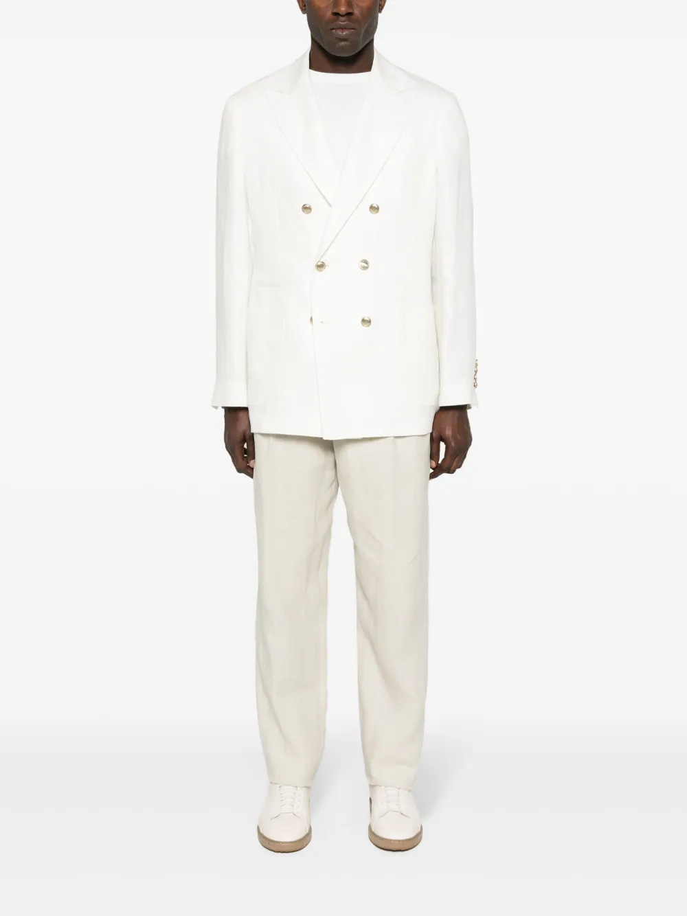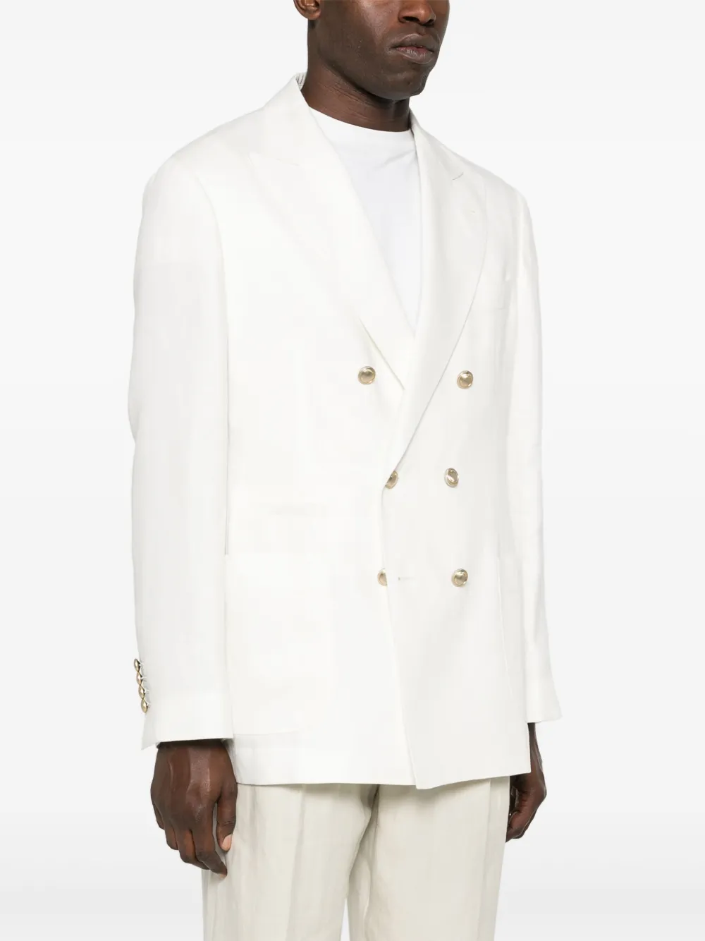 Двубортный льняной пиджак Brunello Cucinelli, белый