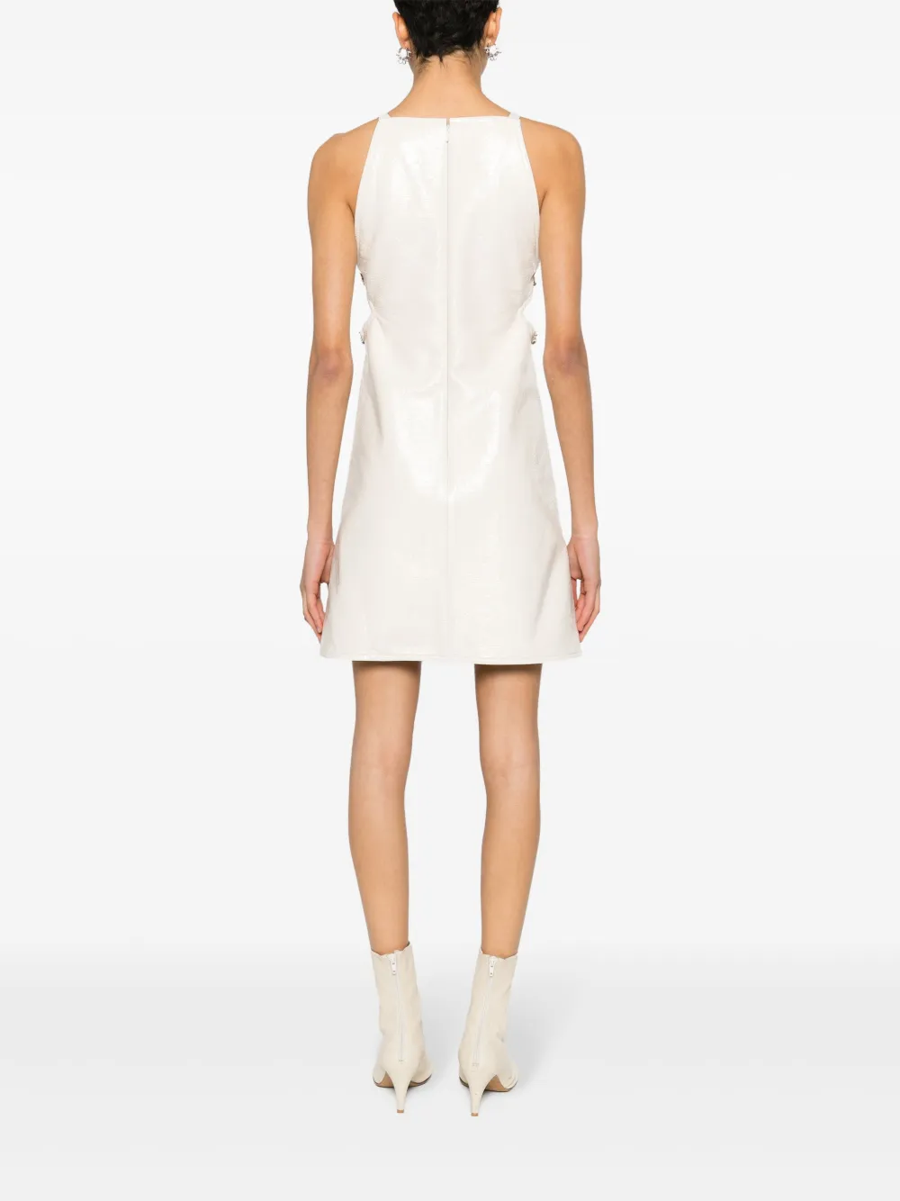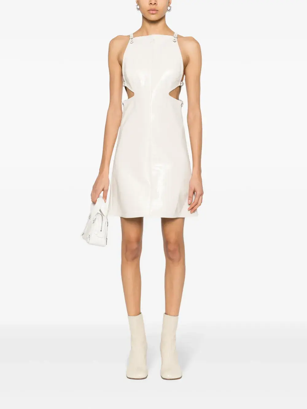 Подробнее о товаре: • кремовый • смесовый хлопок • эластичный материал • лакированный материал с жатым эффектом • квадратный вырез • регулируемые бретели с пряжками • нашивка с логотипом спереди • декоративная пряжка сбоку • вырезные детали сбоку • юбка А-образного силуэта • длина до бедер • прямой подол • модель без подкладки • прямой подол • потайная застежка на крючках и молнии сзади