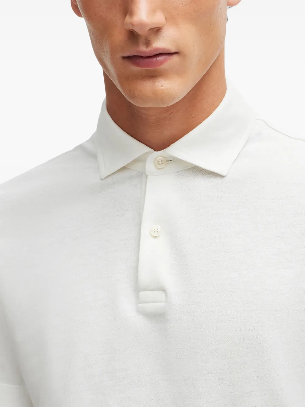 Рубашка поло из смеси хлопка и льна BOSS, белый