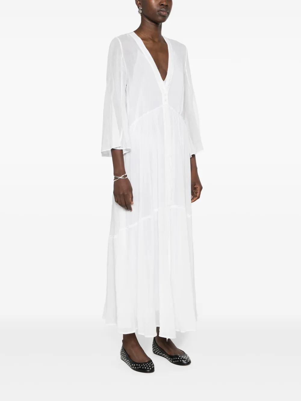 Расклешенное платье с V-образным вырезом Forte Forte, белый 55 972₽