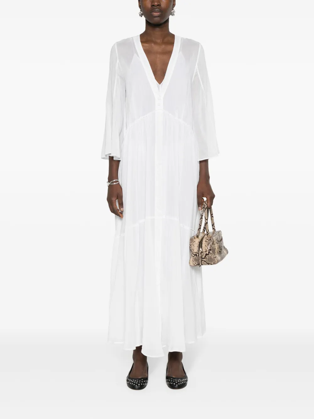 Расклешенное платье с V-образным вырезом Forte Forte, белый