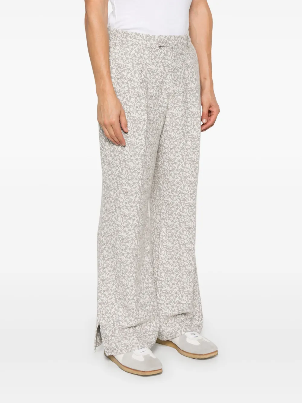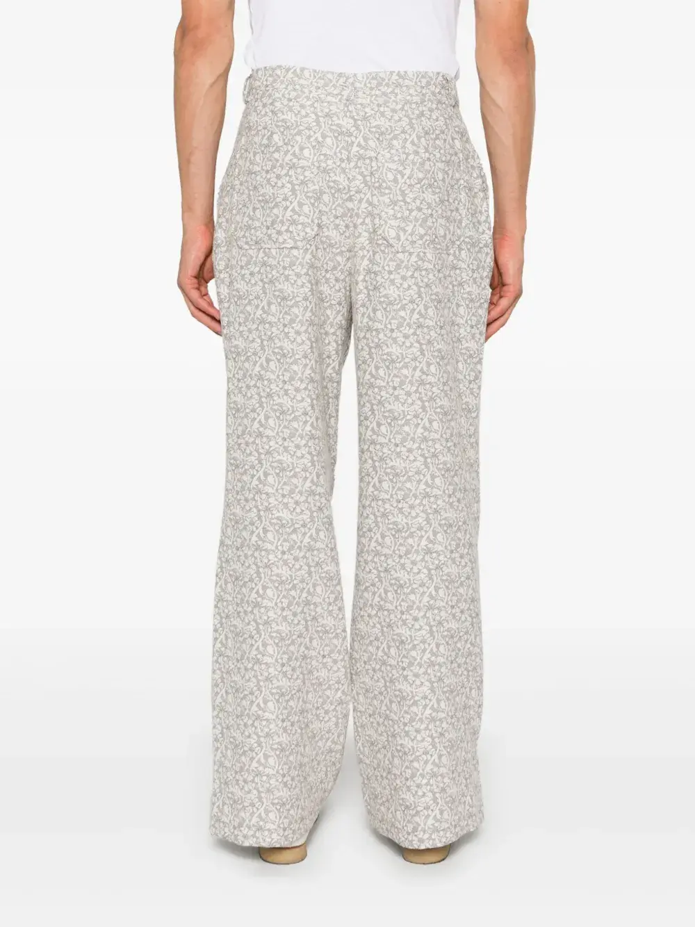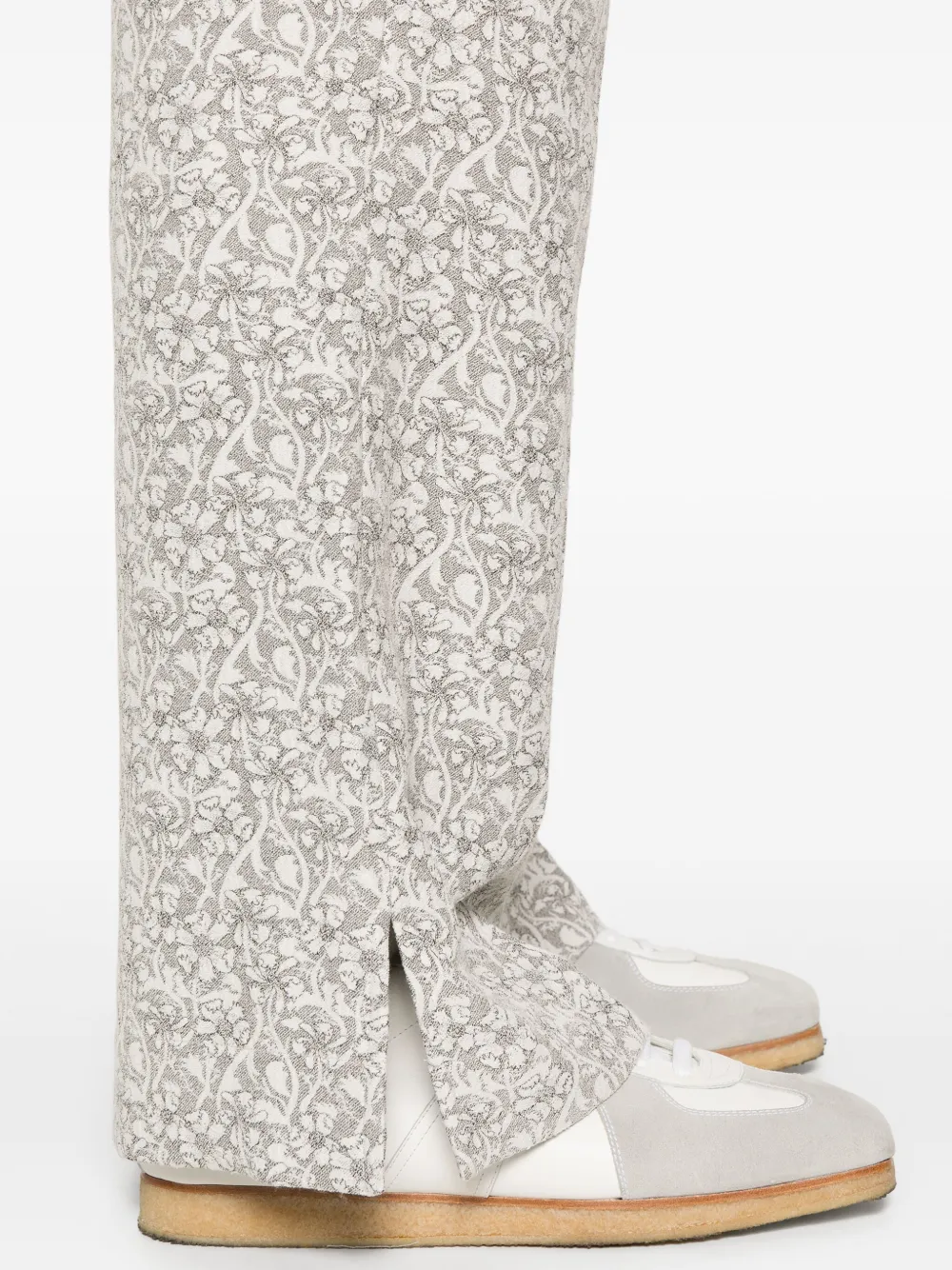 Подробнее о товаре: • белый/светло-серый • потайная застежка на пуговицы, крючок и молнию спереди • жаккардовый материал с цветочным узором • петли для ремня • два прорезных кармана по бокам • складки спереди • разрезы по бокам • два накладных кармана сзади • цельная подкладка • прямой крой • Это унисекс-модель. Обратите внимание, что для нее используется мужская размерная сетка.