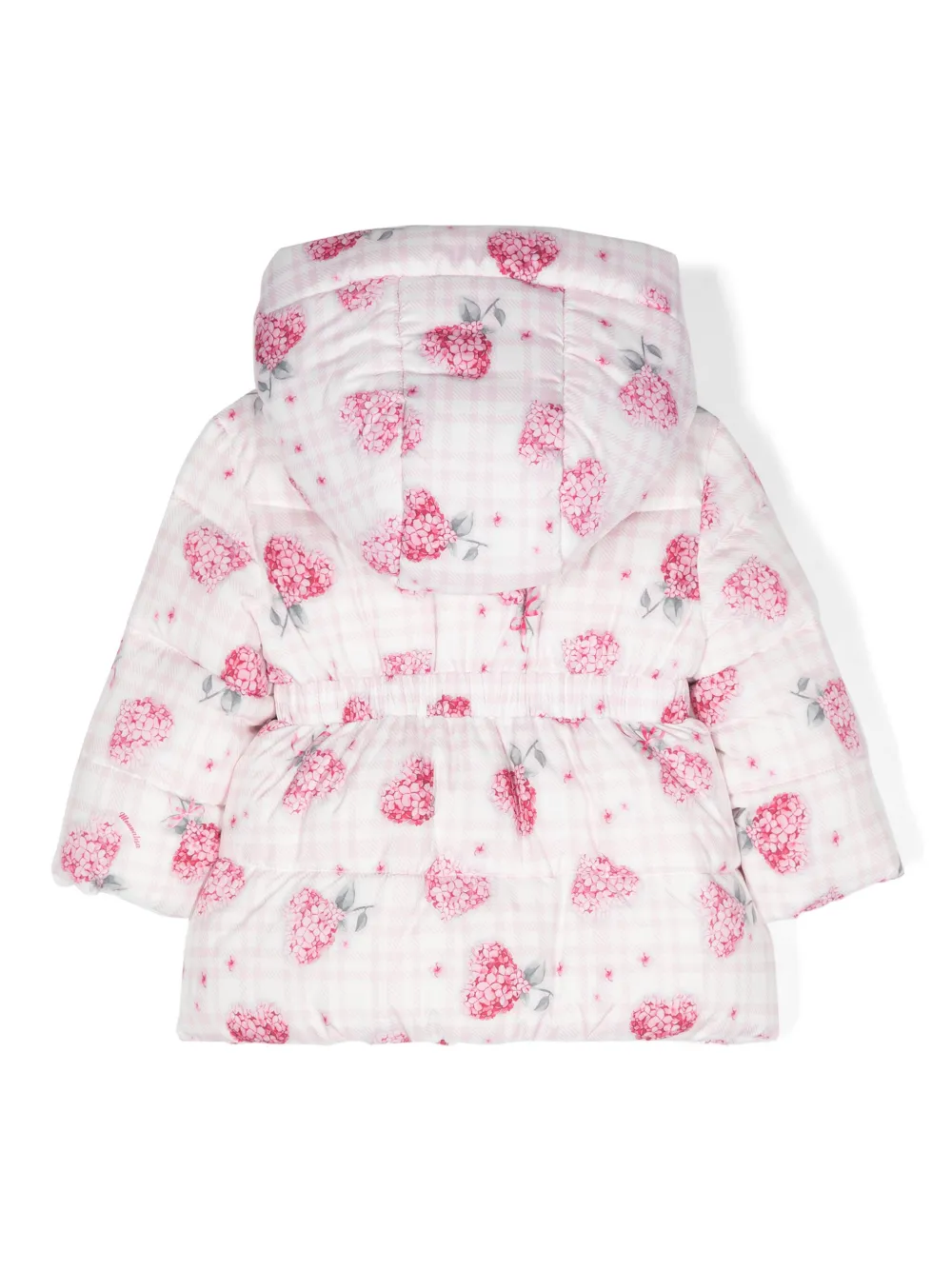Пуховик с капюшоном и цветочным принтом Monnalisa, белый