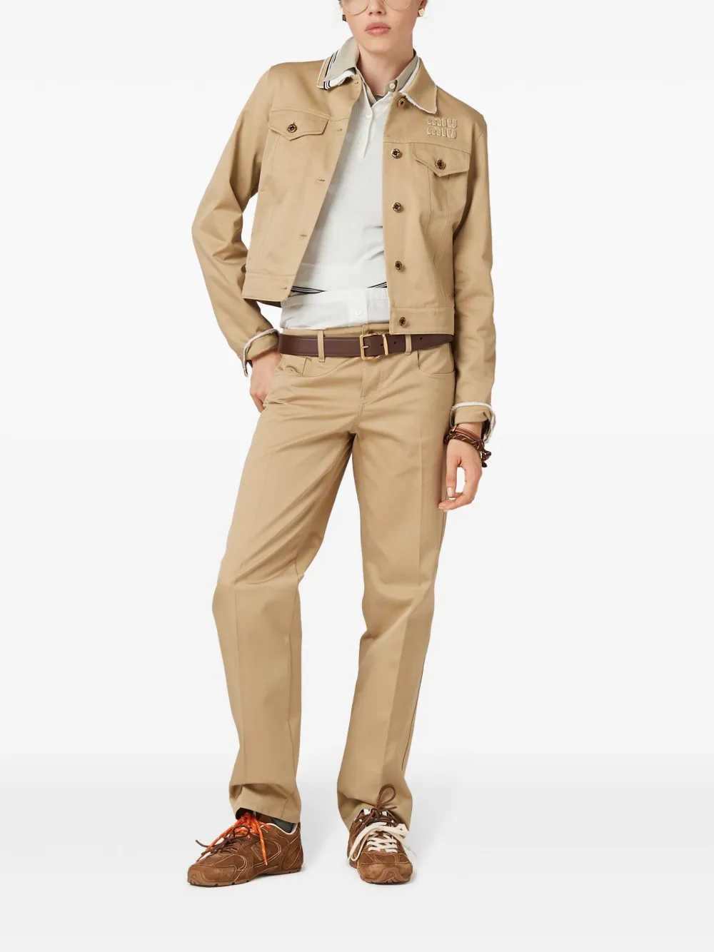 Рубашка поло с отделкой в полоску MIU MIU, белый 156 804₽