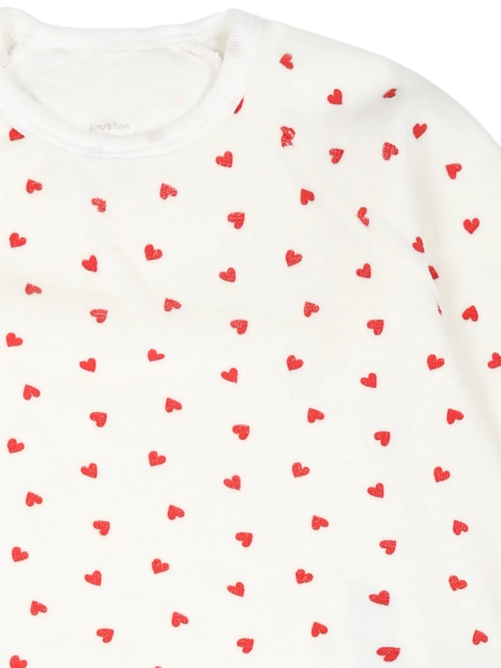 Подробнее о товаре: • белый • органический хлопок • узор с изображением сердца • сплошной графичный принт • круглый вырез • Ответственный выбор: В составе этого товара есть органический хлопок. Его производитель не использует химические вещества, пестициды и искусственные удобрения и внедряет методы, которые помогают сохранить биоразнообразие, улучшают качество почвы и сокращают потребление воды.