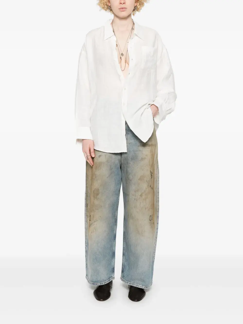 Рубашка с приспущенным воротником R13, белый