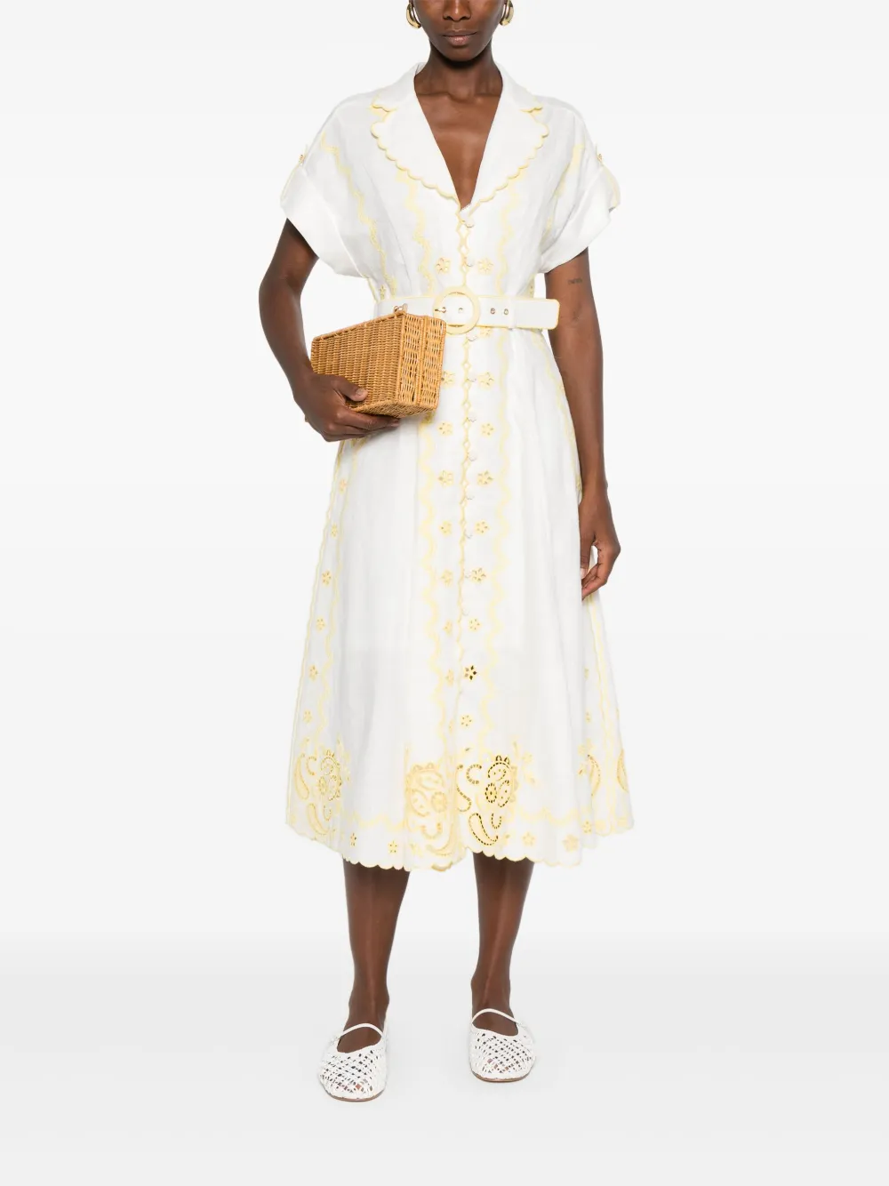 Платье миди Lucky с вышивкой ZIMMERMANN, белый