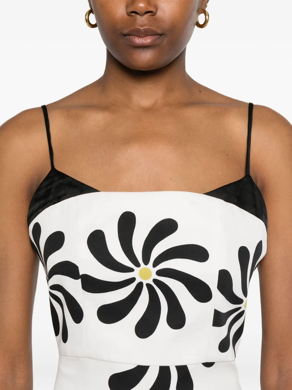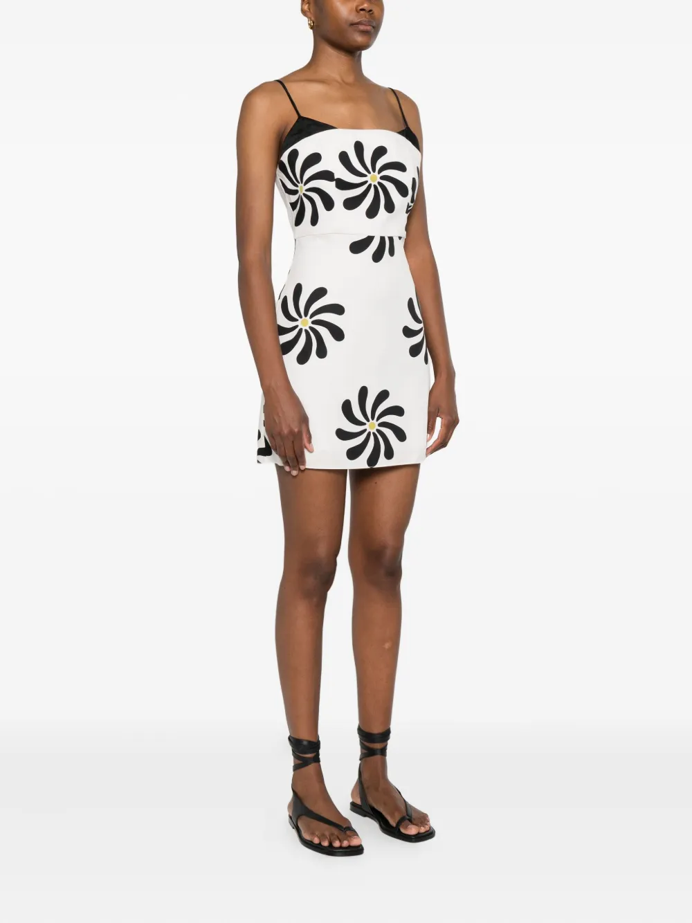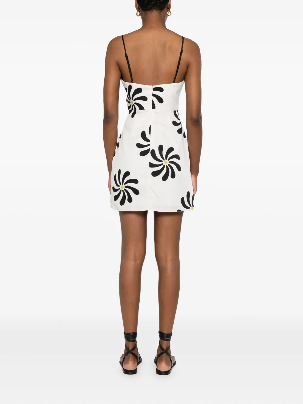 Белая потайная застежка-молния сзади, регулируемые тонкие бретельки, графический принт по всей поверхности