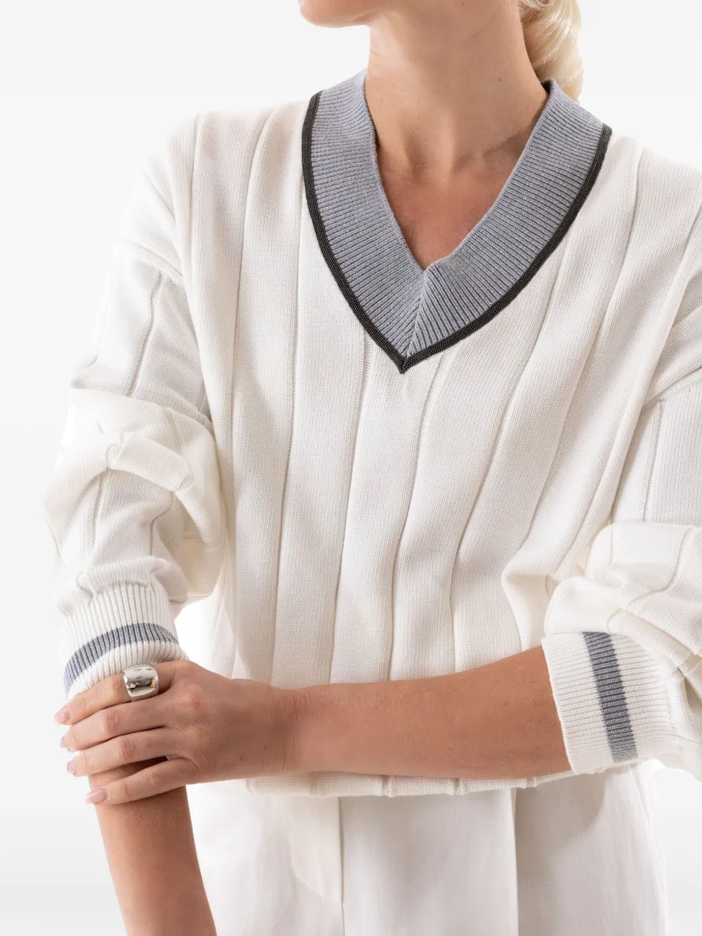 Свитер с декором Monili Brunello Cucinelli, белый