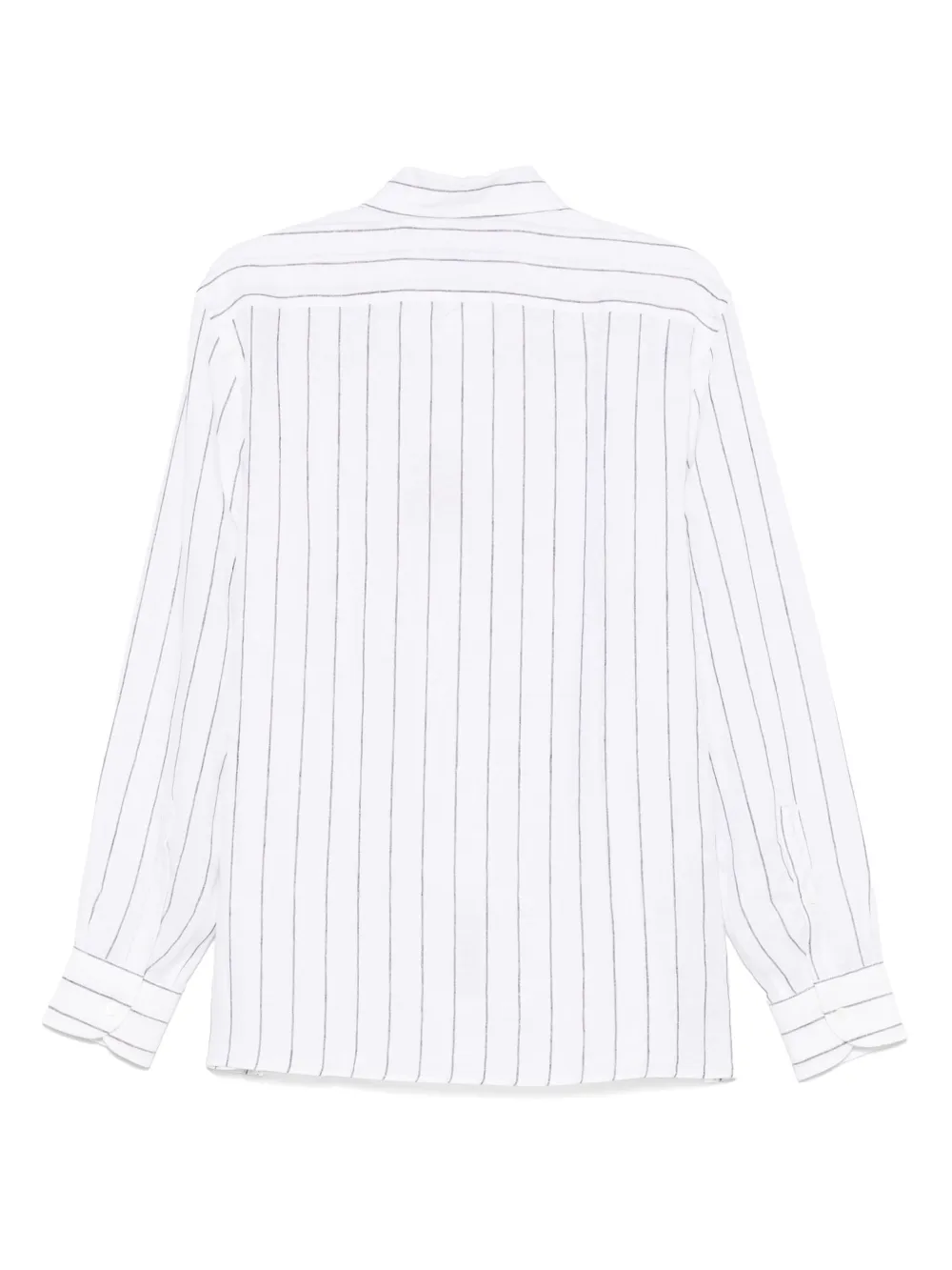 Белый узор с вертикальными полосками, застежка на пуговицы спереди, длинные рукава, манжеты на пуговицах