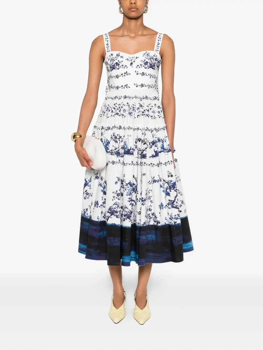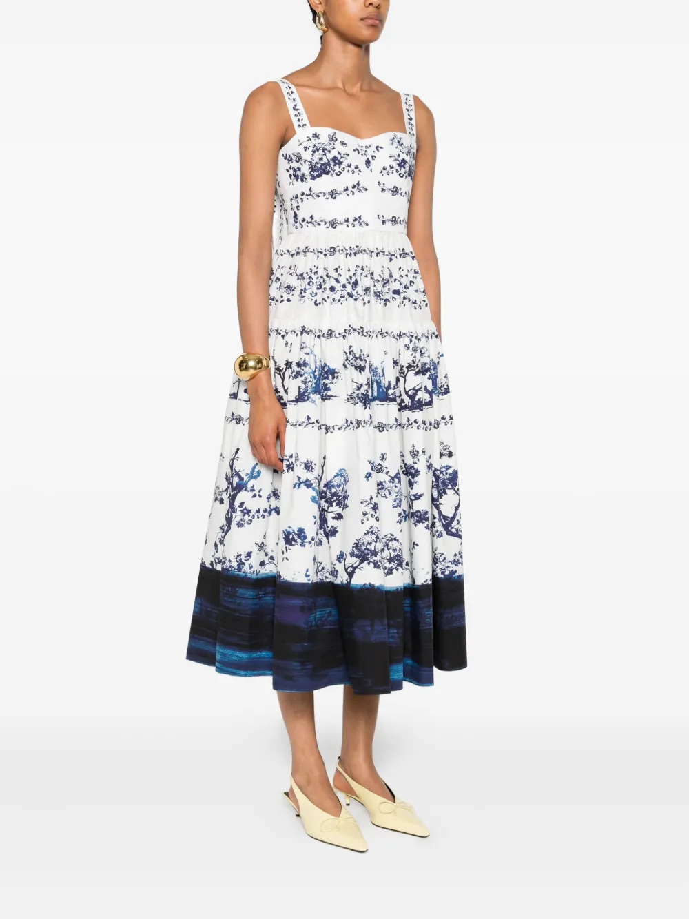Платье миди с цветочным принтом ERDEM, белый 105 187₽