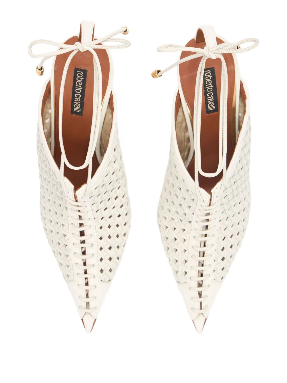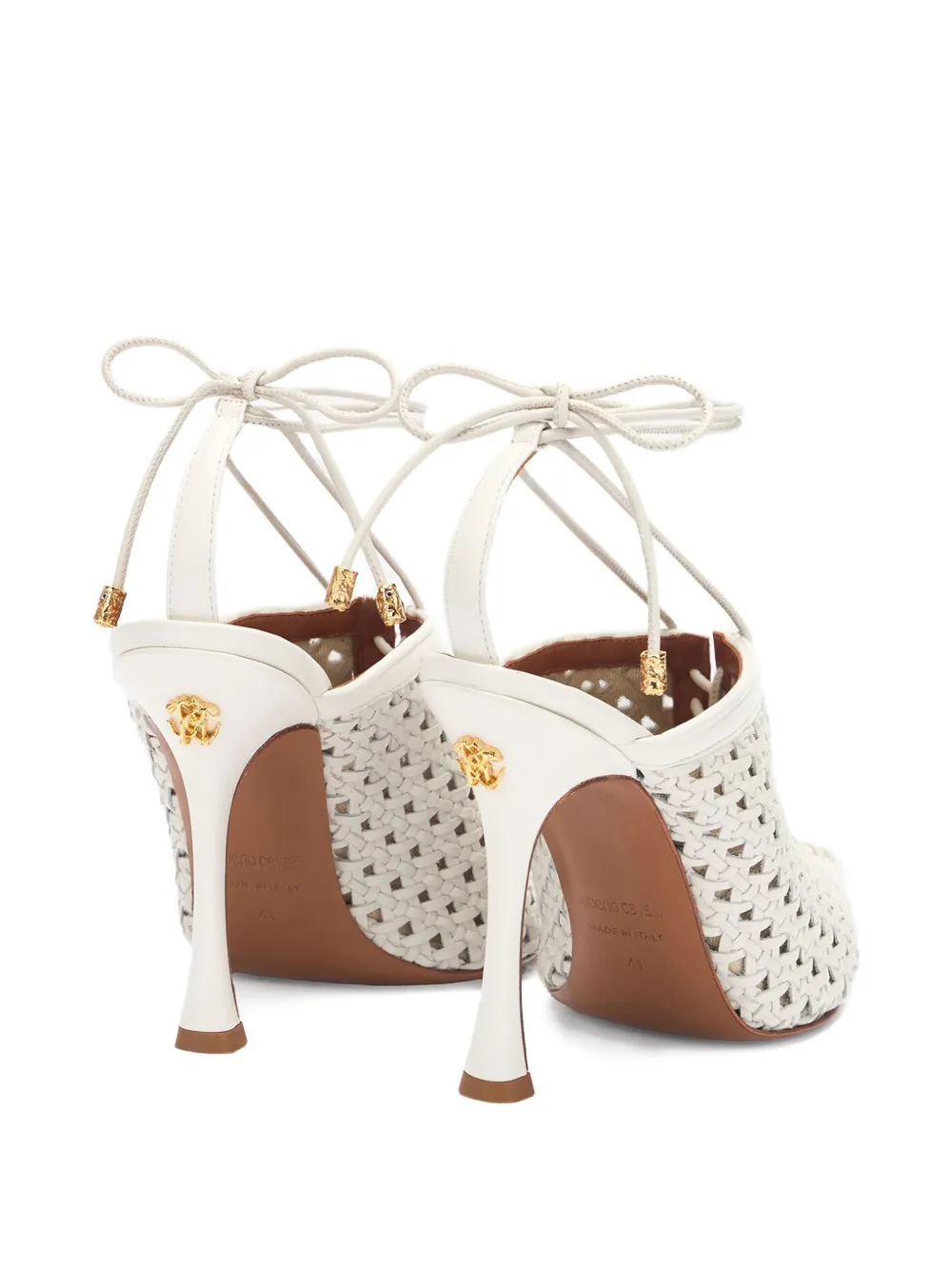 Плетеные босоножки на каблуке Roberto Cavalli, белый