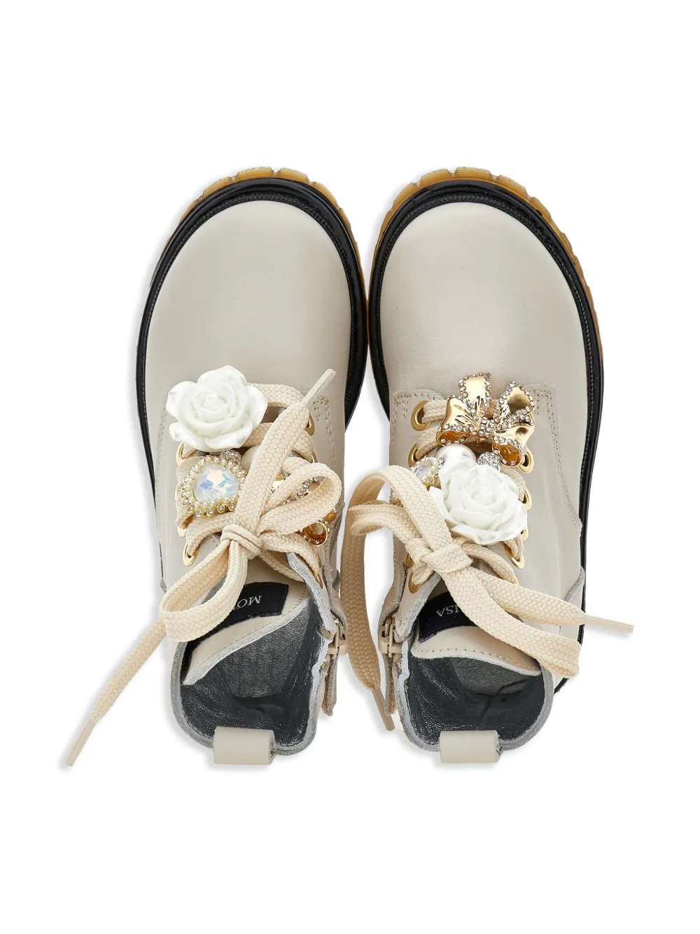 Ботинки с цветочной аппликацией Monnalisa, белый