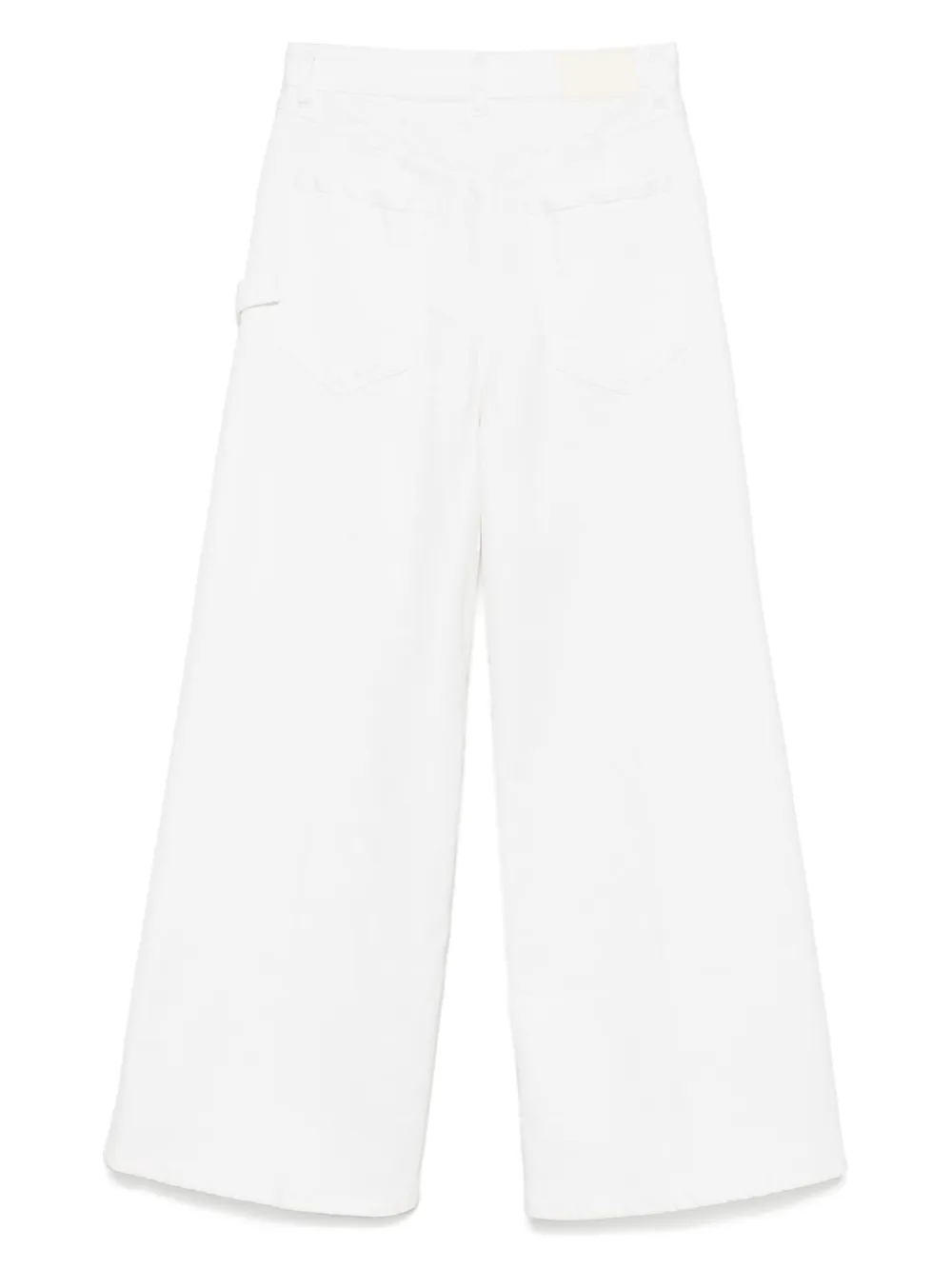 Белая застежка на пуговицы спереди, классические пять карманов, шлевки для ремня, широкие штанины