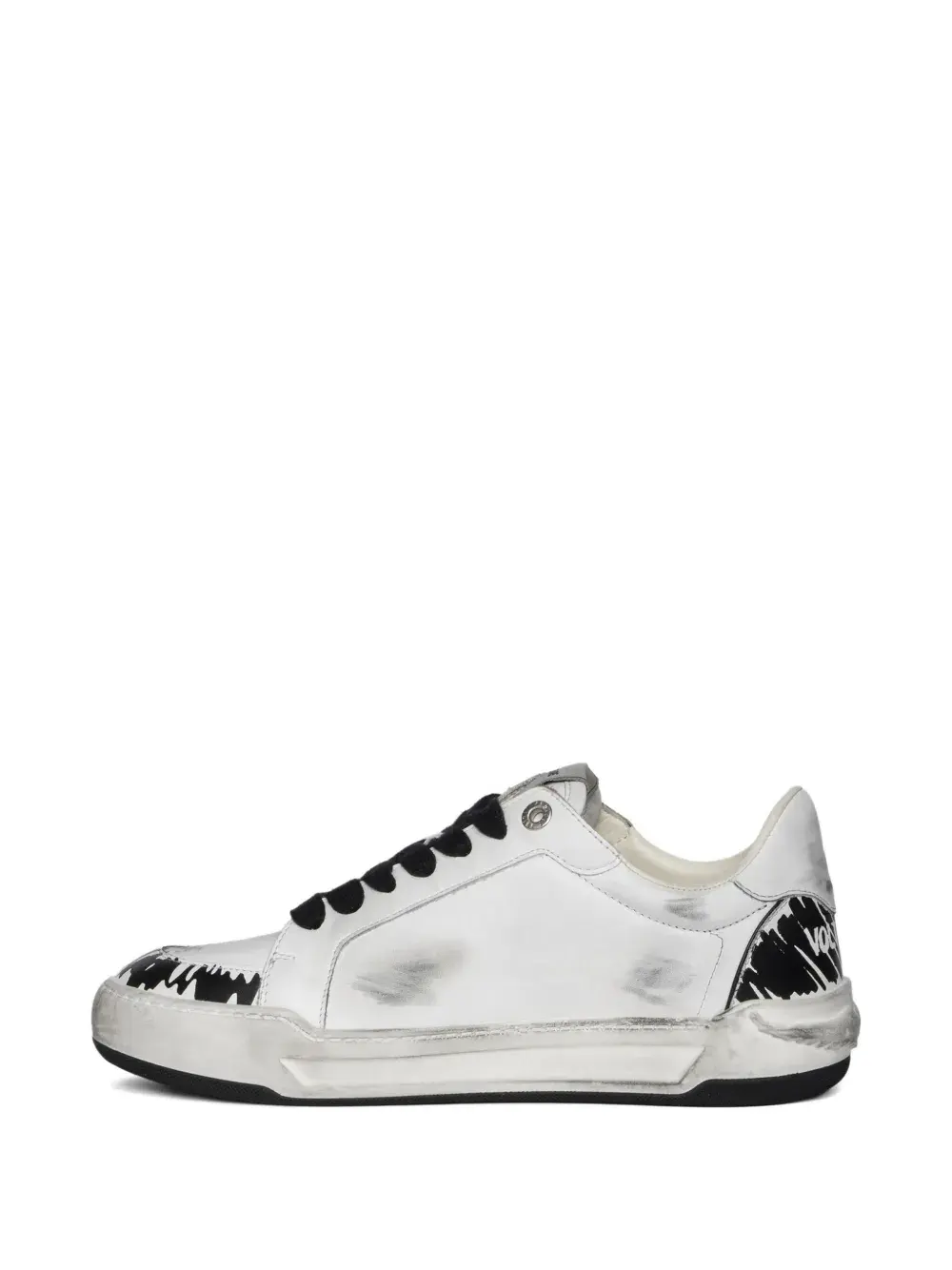 Верх из белой кожи, окрашенные детали, прошитые крылья, плоская подошва, шнуровка