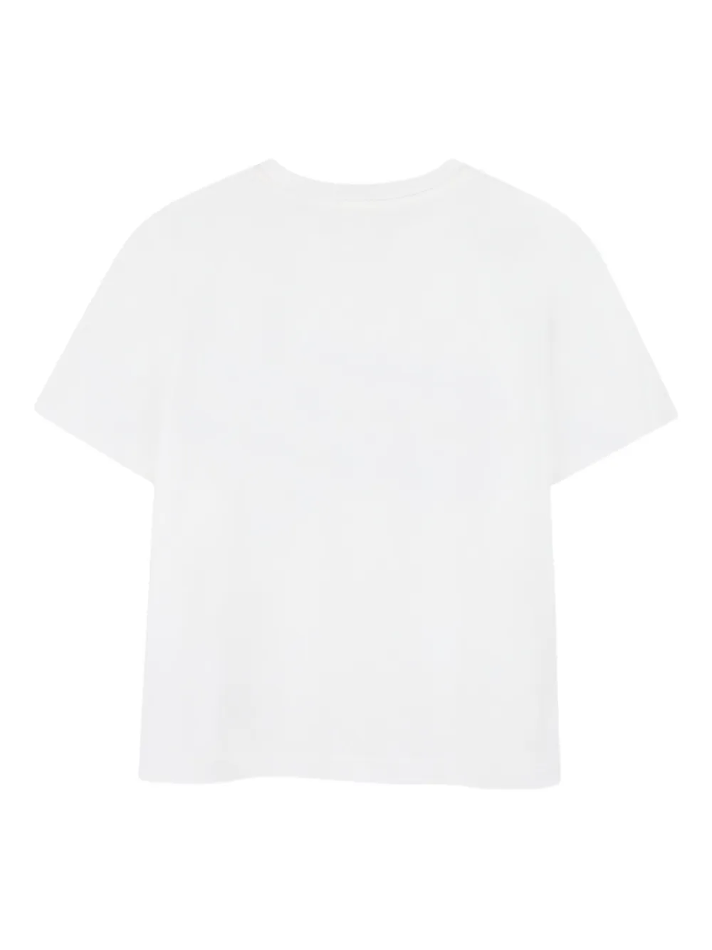 Белая футболка с короткими рукавами, круглым вырезом и вышитым логотипом