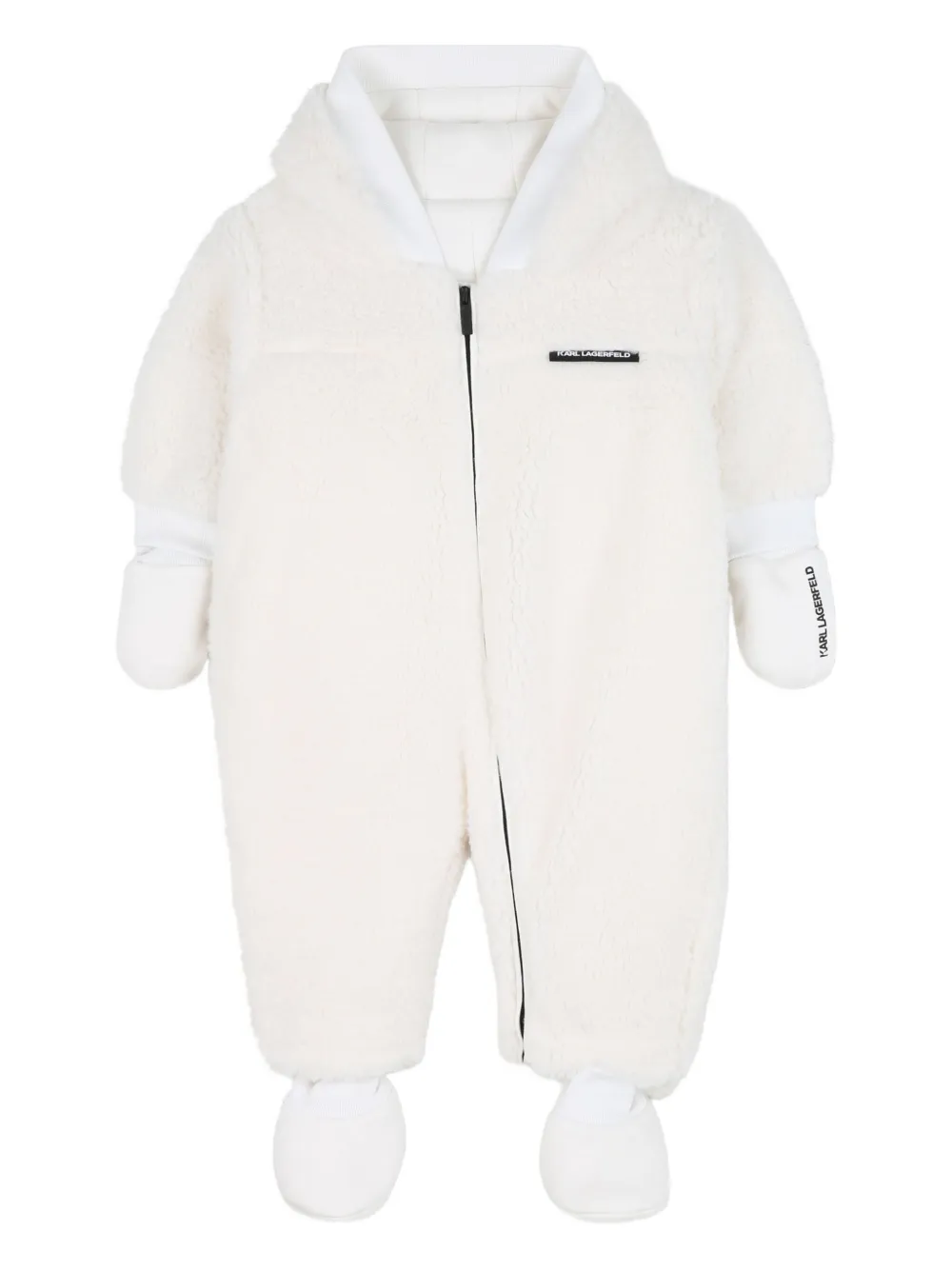 Дутый комбинезон из шерпы с капюшоном KARL LAGERFELD KIDS, белый