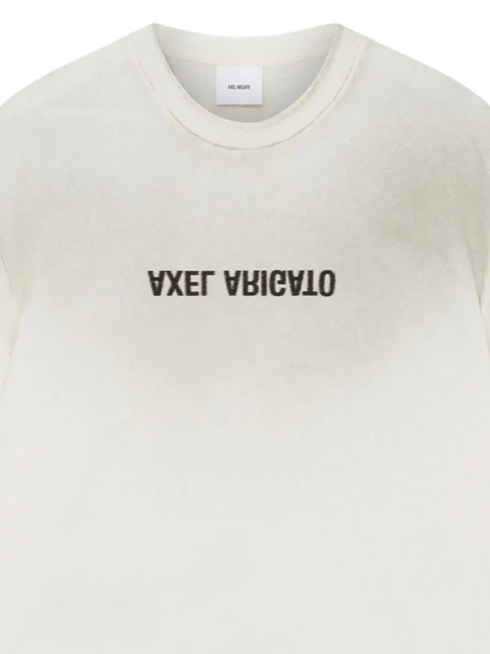 Белый логотип с принтом спереди, спущенное плечо, круглый вырез горловины, короткие рукава