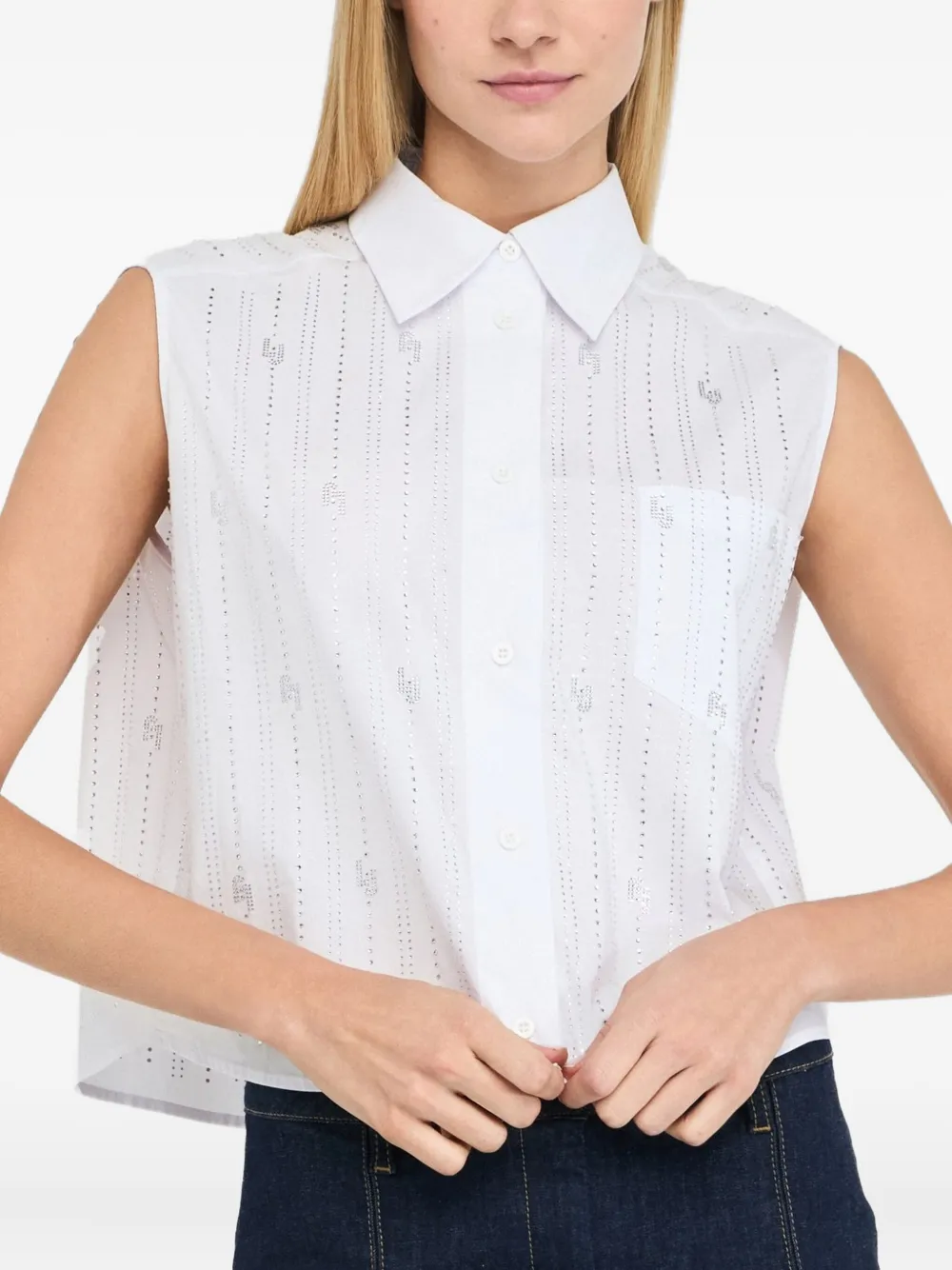 Хлопковая рубашка, украшенная стразами LIU JO, белый