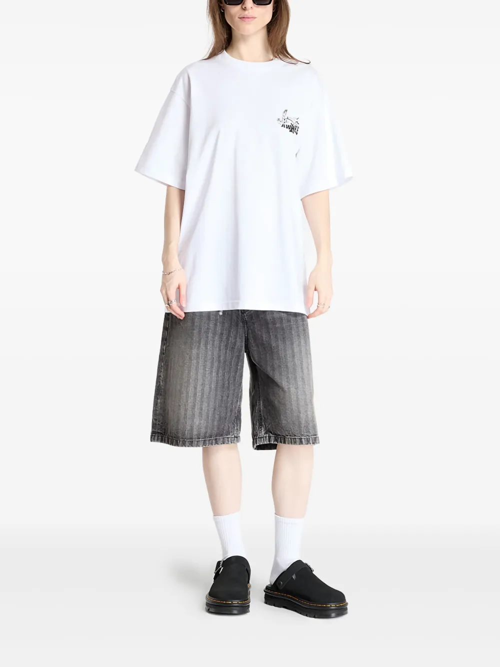 Белый передний графический принт, короткие рукава, круглый вырез, свободный крой