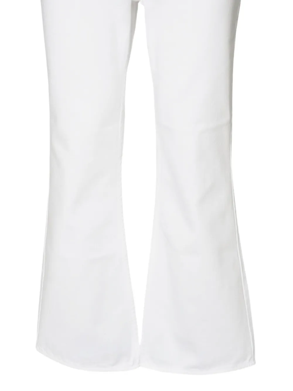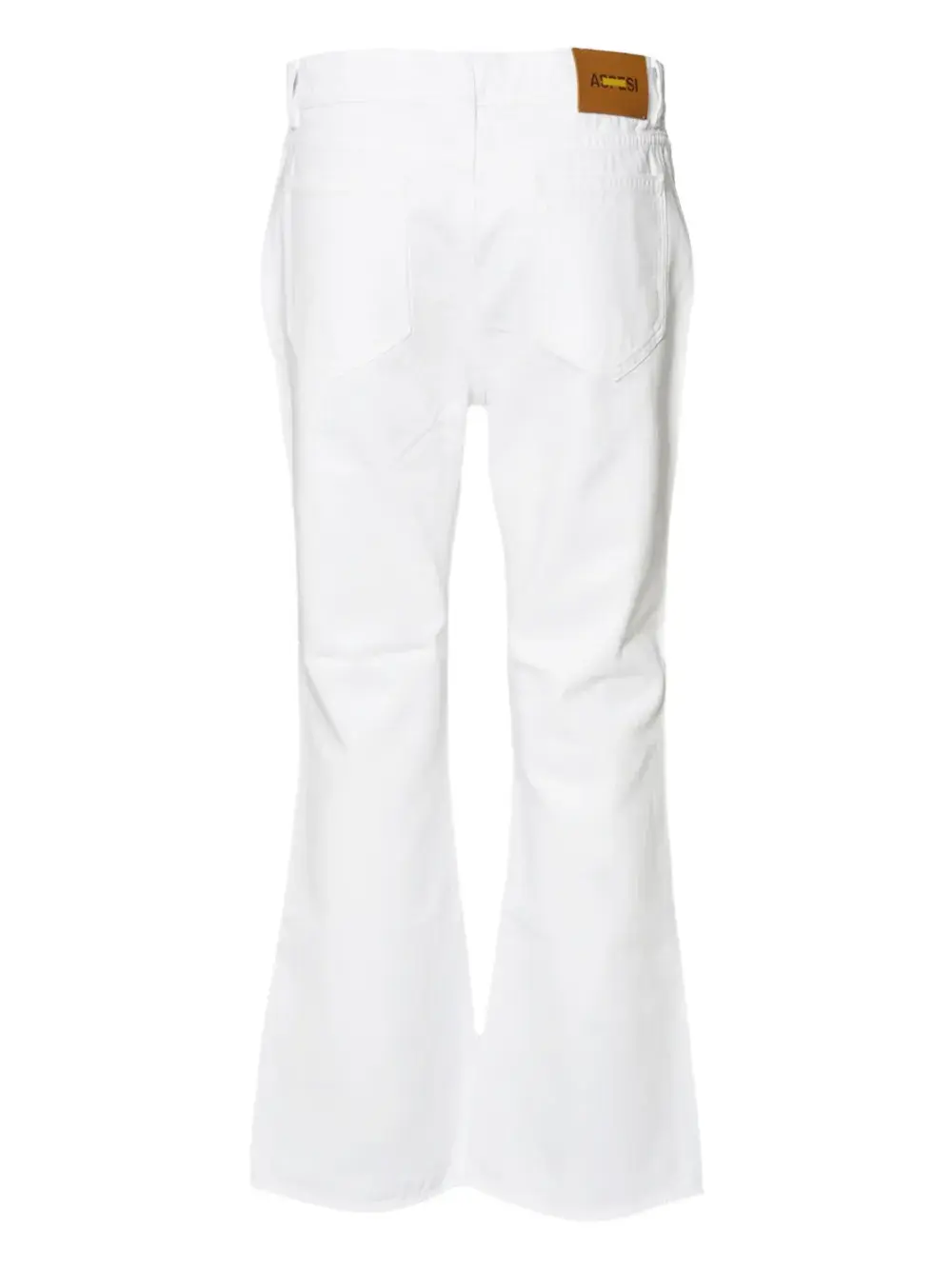 Белая застежка на пуговицы и молнию спереди, классические пять карманов, шлевки для ремня, нашивка с логотипом сзади