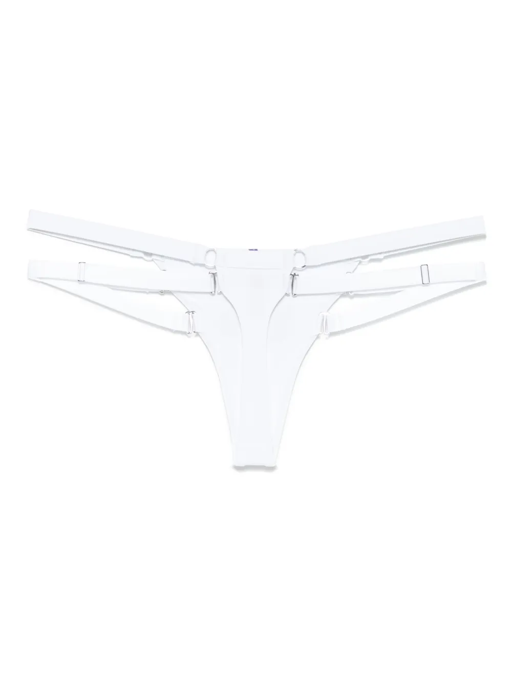Белые регулируемые по бокам стринги. Обязательно примеряйте купальники поверх своей одежды.