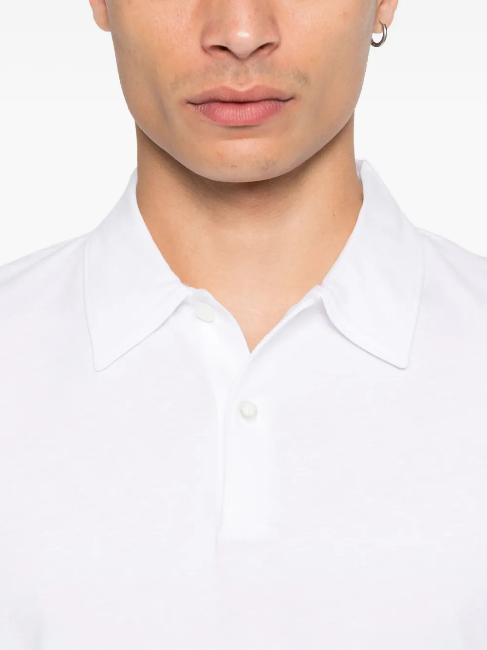 Белый с короткими рукавами, воротником-поло, застежкой на пуговицы, прямым подолом, органическим хлопком