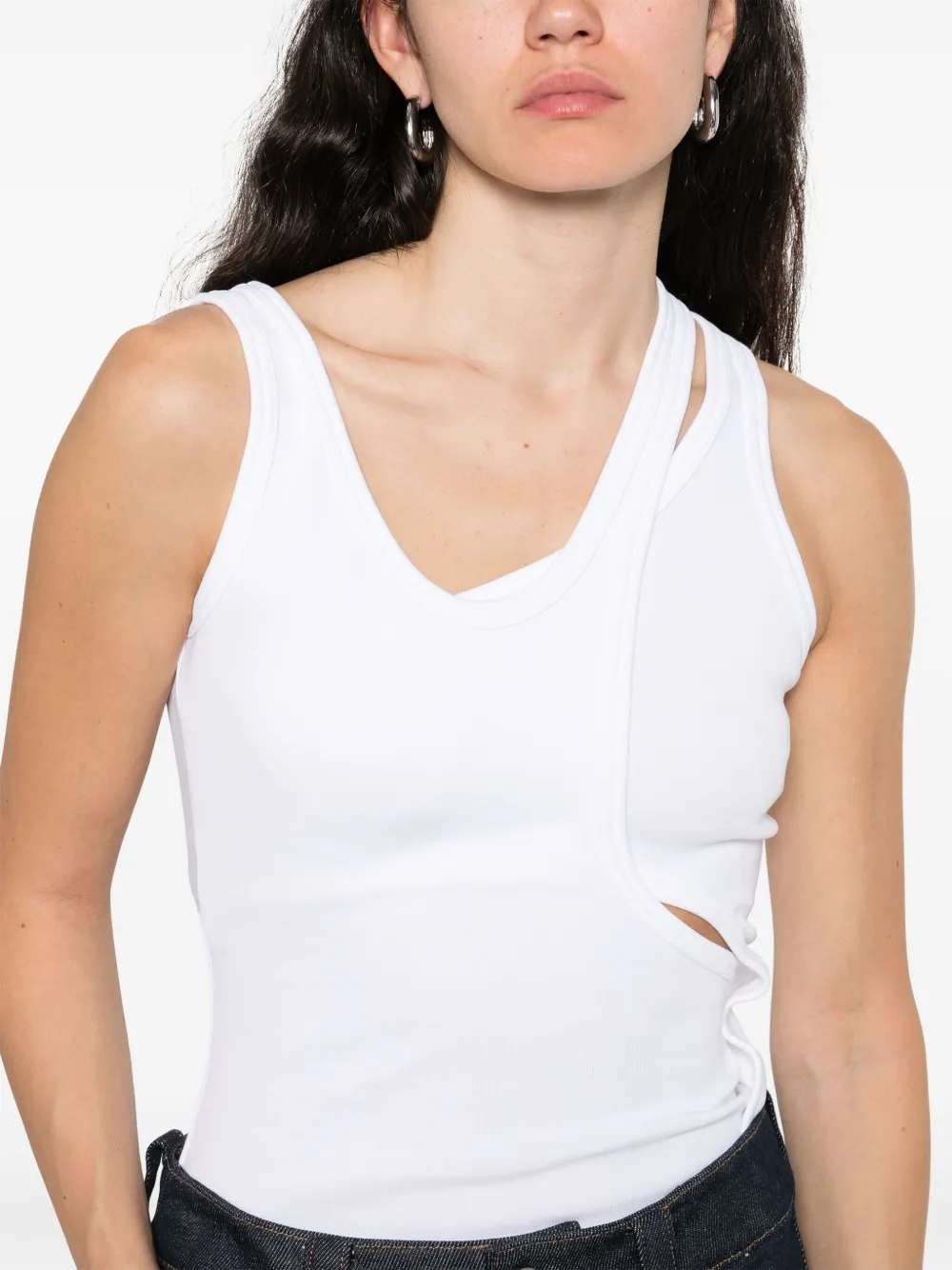 Белый многослойный дизайн с круглым вырезом без рукавов