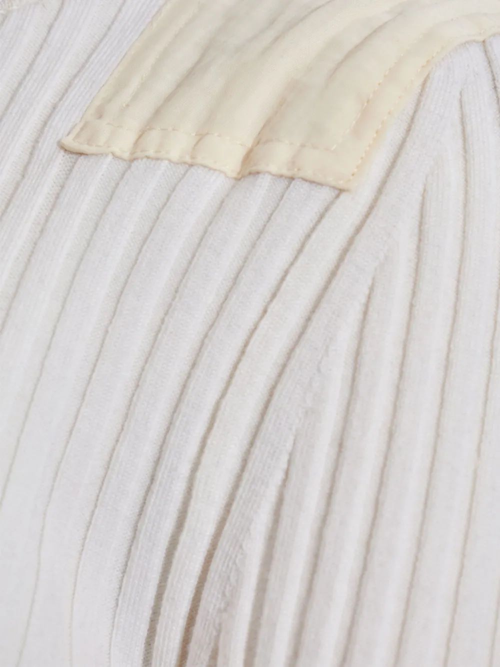 Белый круглый вырез горловины, длинные рукава, ребристый крой, прямой подол