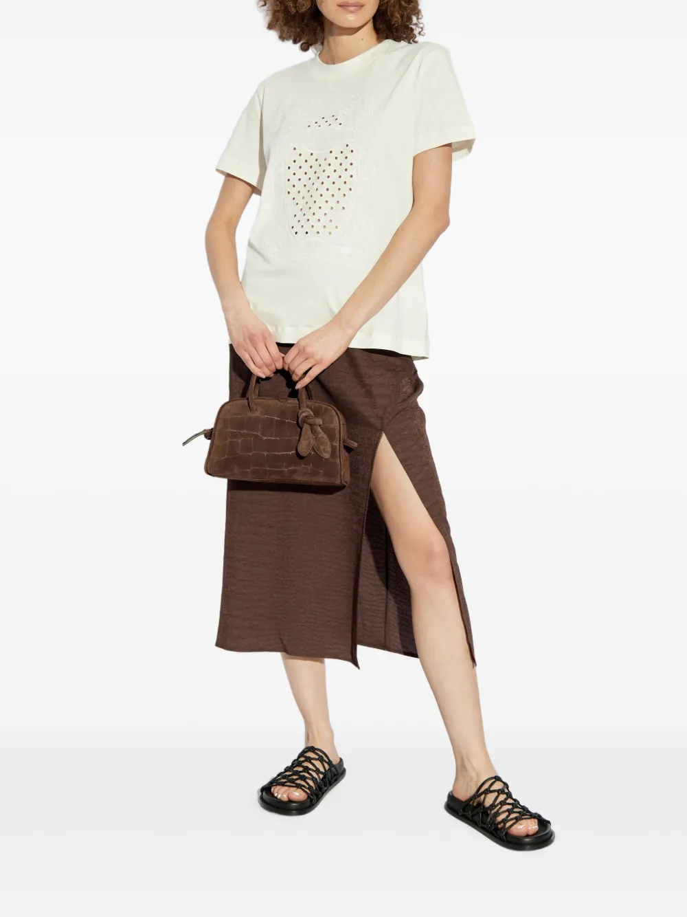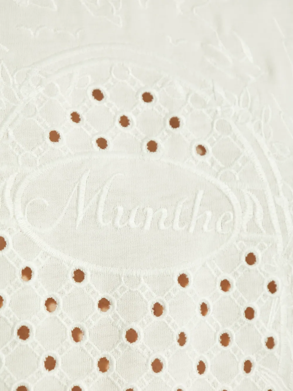 Рельефный логотип цвета слоновой кости, короткие рукава, круглый вырез