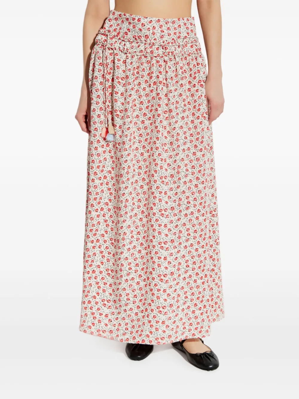 Белый/красный цветочный принт по всей поверхности, эластичный пояс, кисточки, расклешенный дизайн