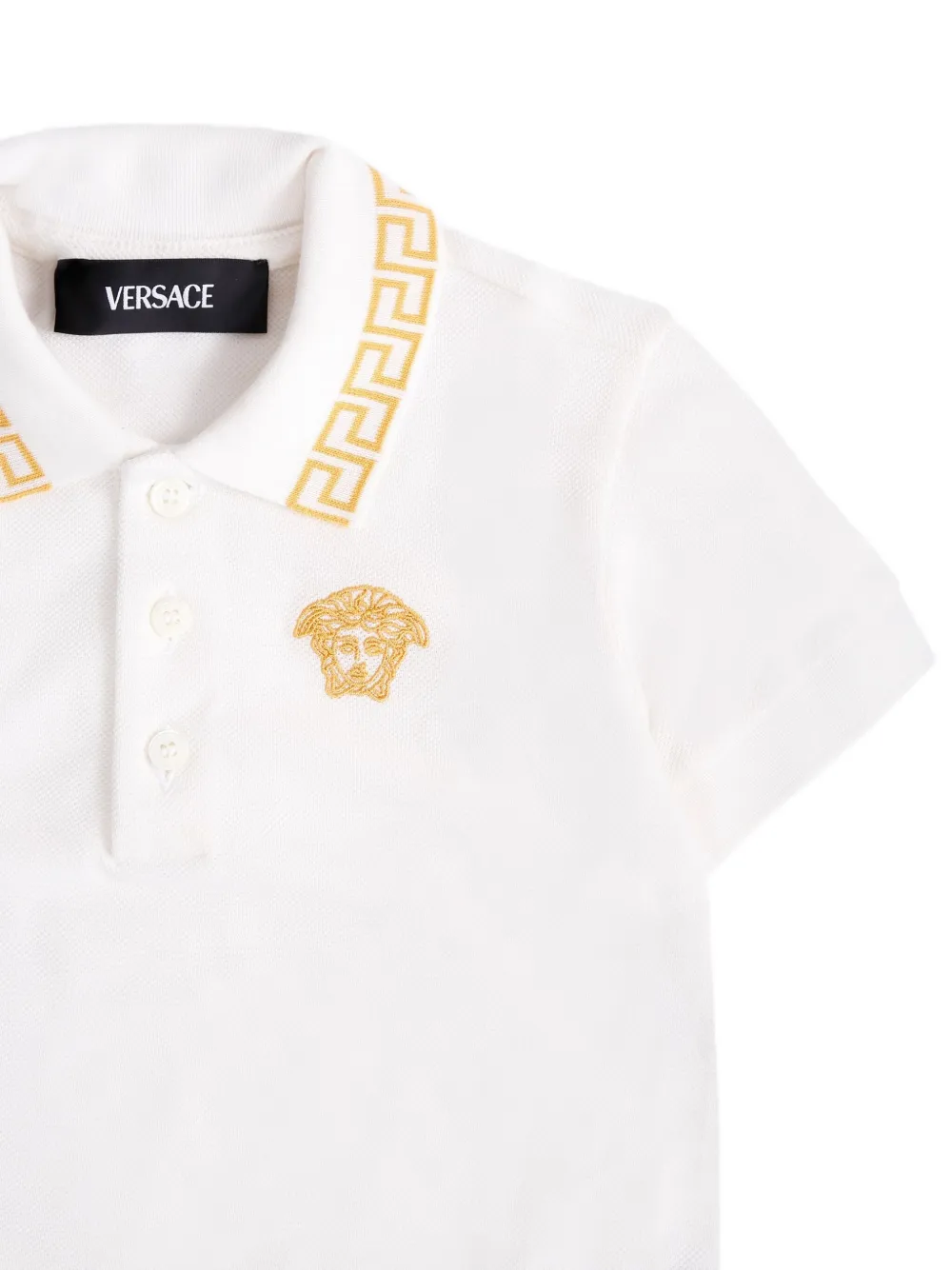 Рубашка-поло с вышитым узором Greca Versace Kids, белый