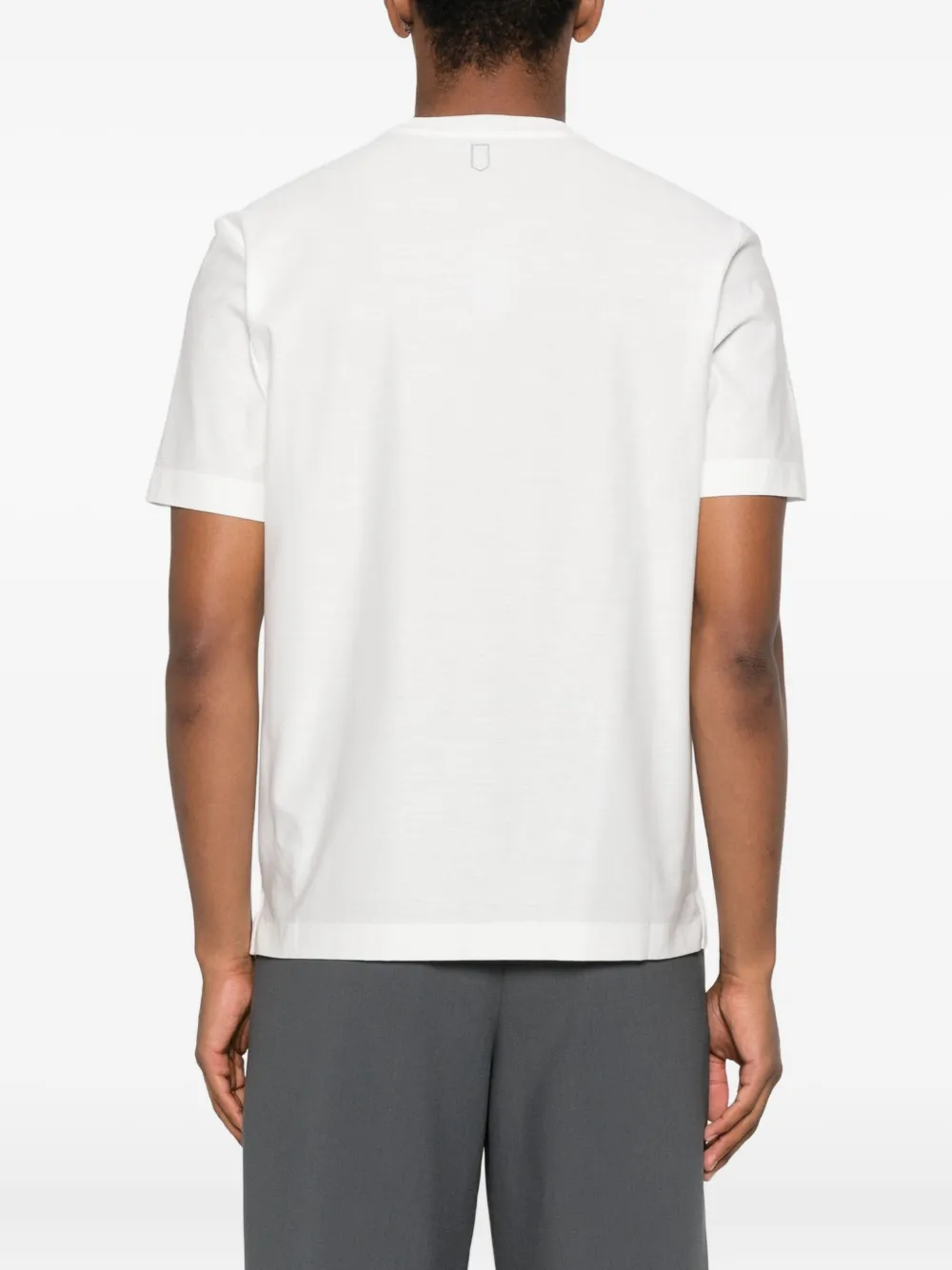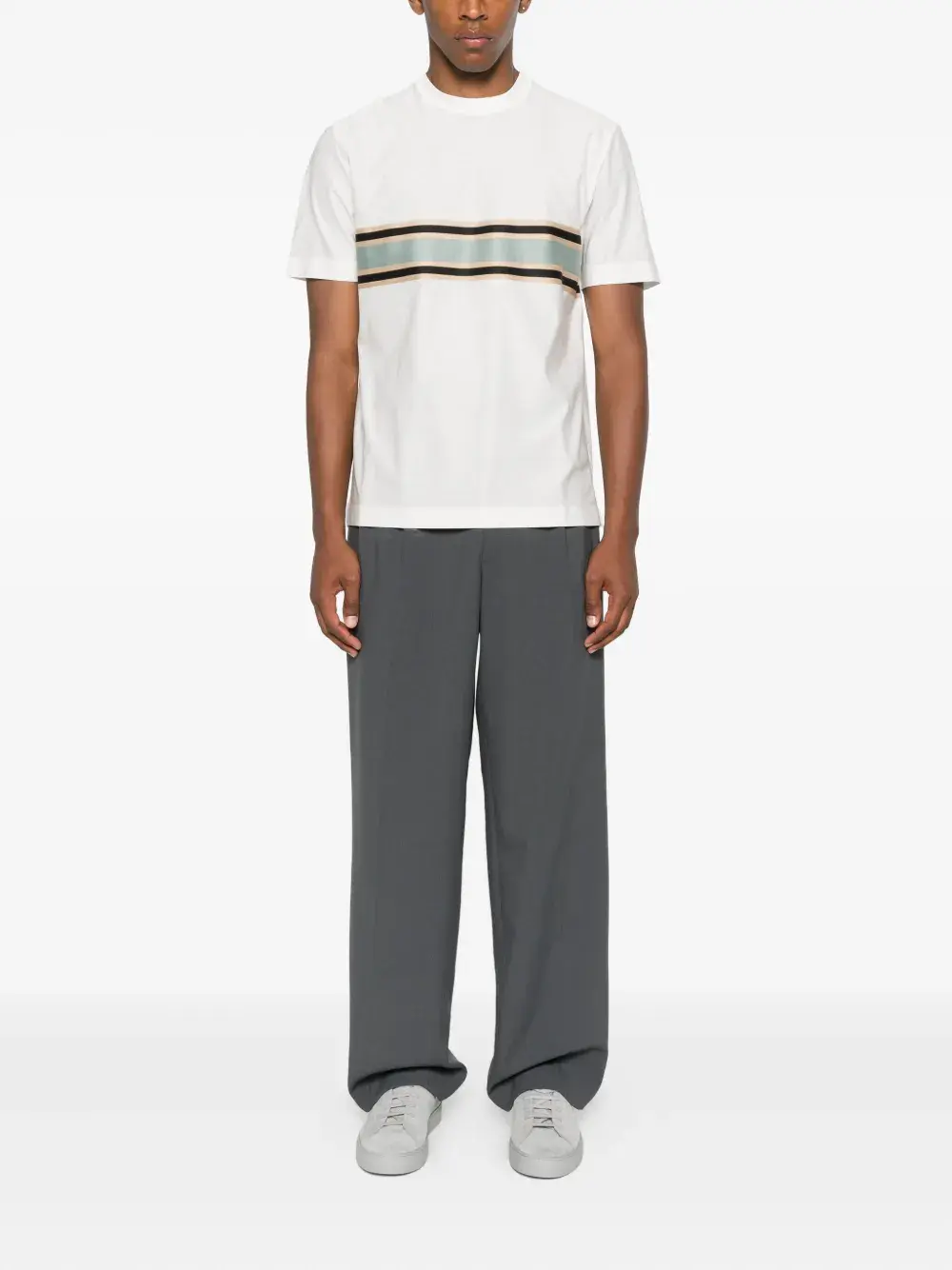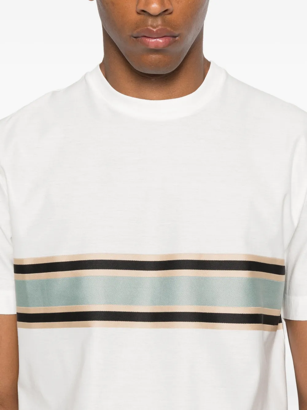 Белая горизонтальная полоса, короткие рукава, круглый вырез