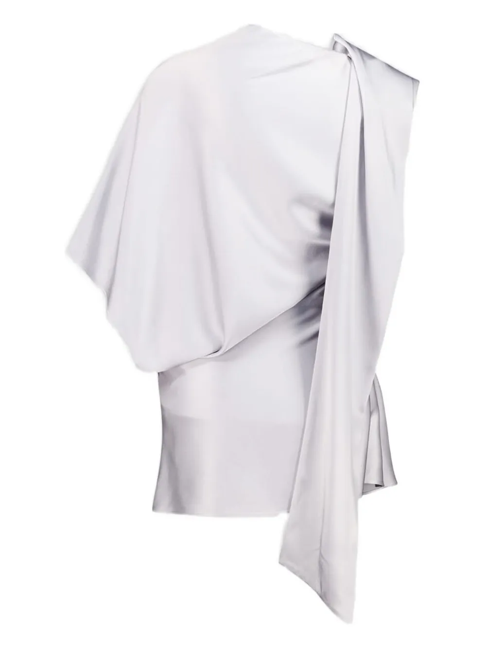 Белый асимметричный драпированный рукав асимметричный подол короткие рукава