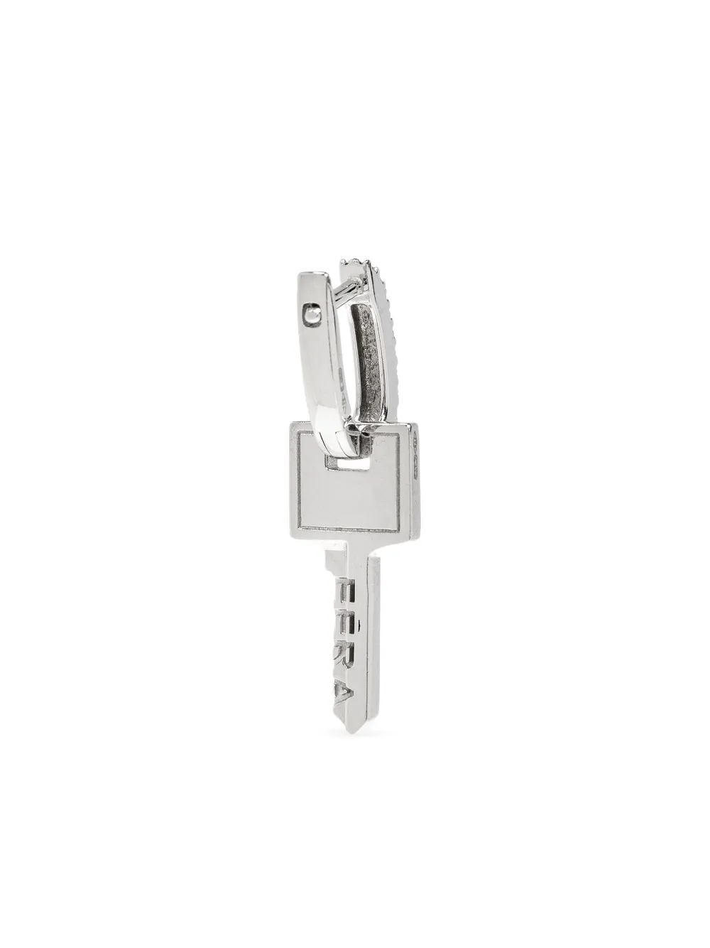 Подробнее о товаре: 18-каратное белое золото • глянцевая фактура • серьги-подвески • выгравированный логотип • паве из бриллиантов круглой огранки • застежка-штифт • В комплект входит одна серьга. • Повседневное использование и воздействие внешних факторов могут уменьшить блеск драгоценных камней и поверхностей, покрытых золотом. Для ухода используйте специальные неабразивные средства, предназначенные для чистки ювелирных изделий.