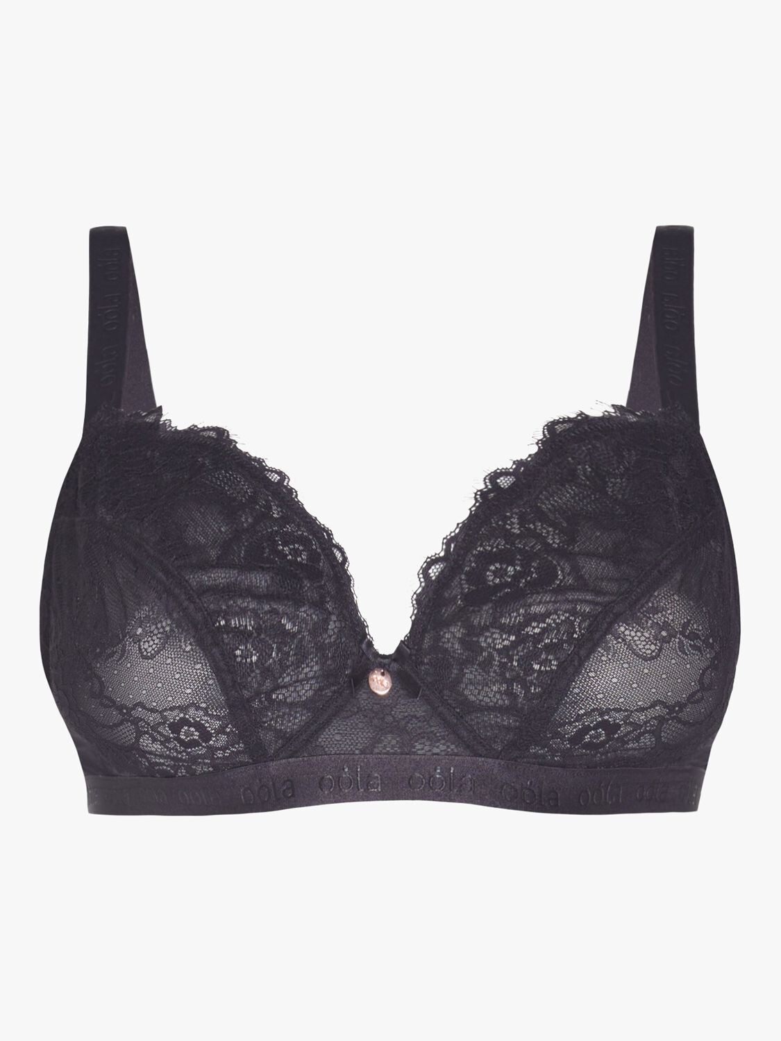 Мягкий бюстгальтер без косточек с кружевом и логотипом Oola, черный