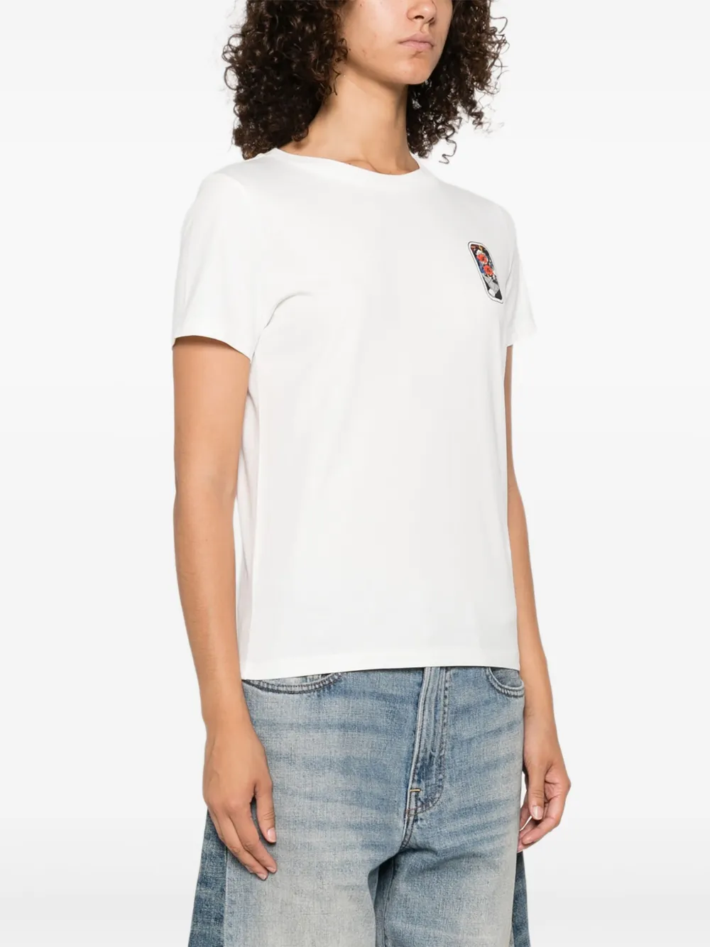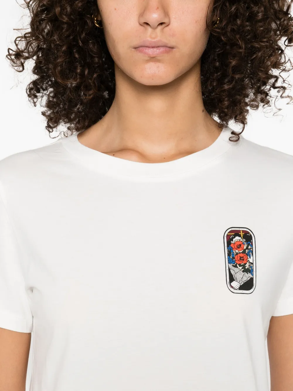 Белый с короткими рукавами и круглым вырезом, с графическим принтом, хлопковый материал