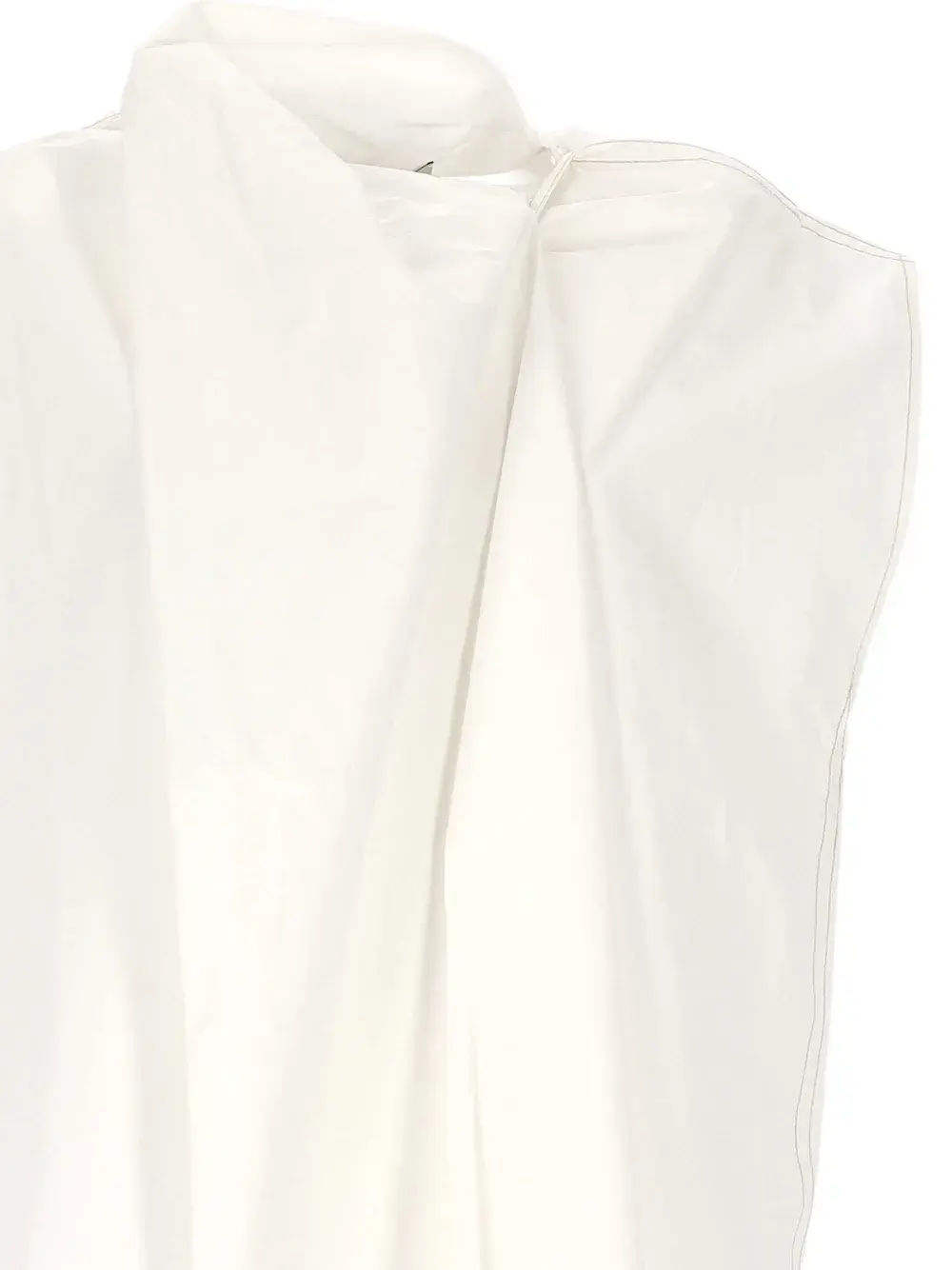 Белая хлопковая ткань с драпировкой, асимметричный подол, без рукавов, высокий вырез