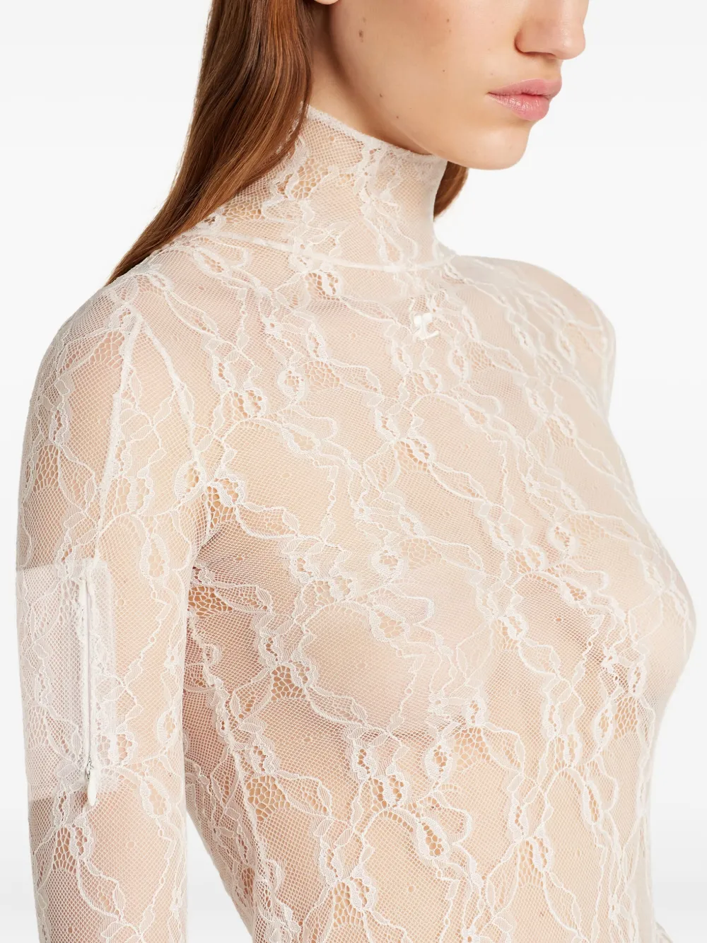 Кружевной топ с высоким воротником Courrèges, белый 46 064₽