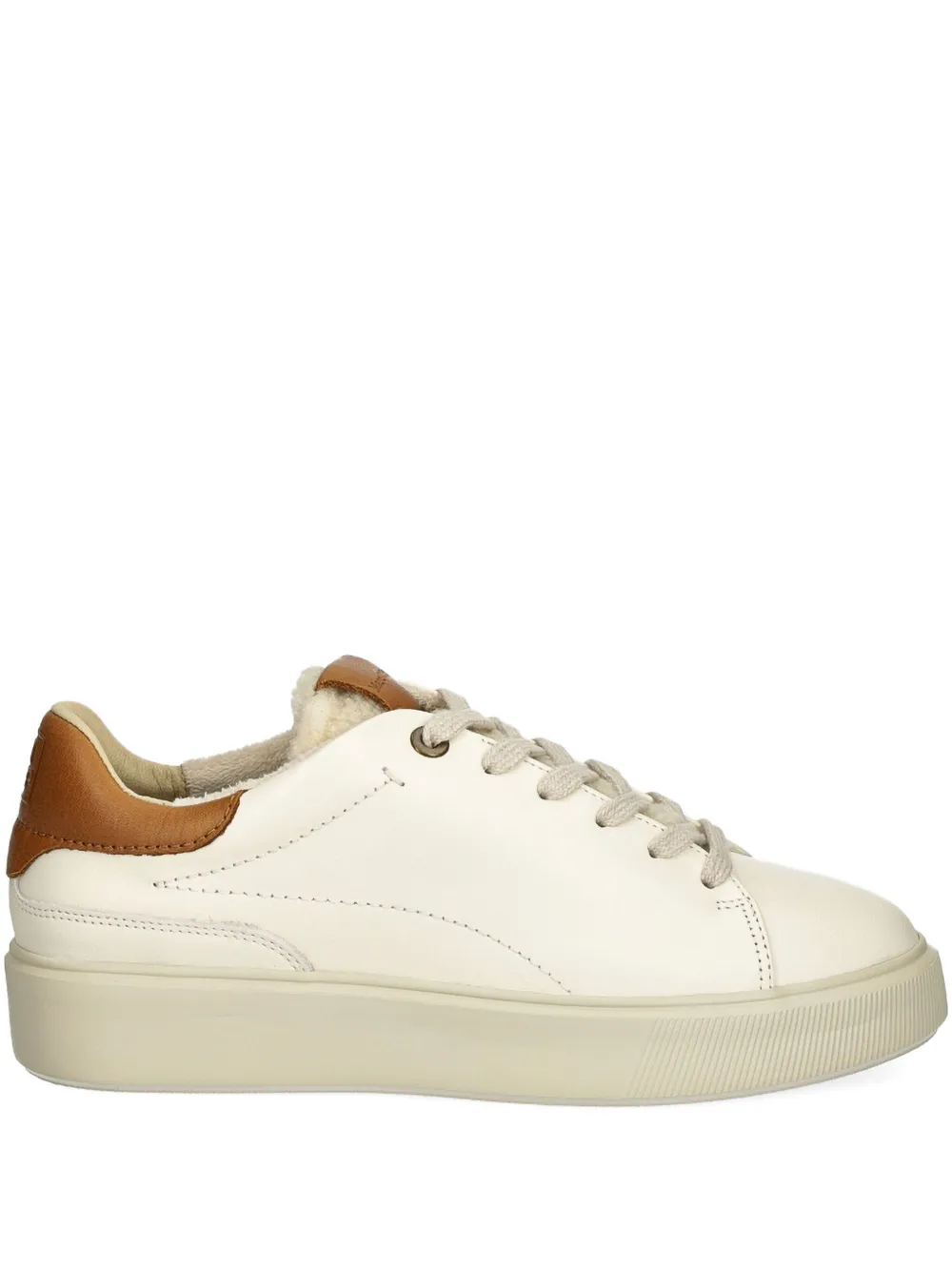 Верх из белой кожи, отделка из овчины, плоская подошва на шнурках, платформа, задник из коричневой кожи