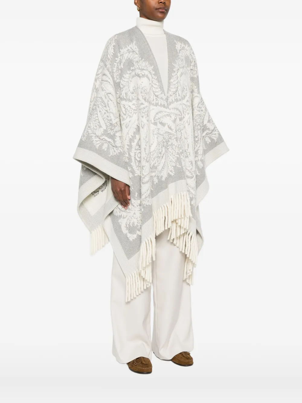 Пончо с бахромой и узором пейсли ETRO, белый 152 350₽
