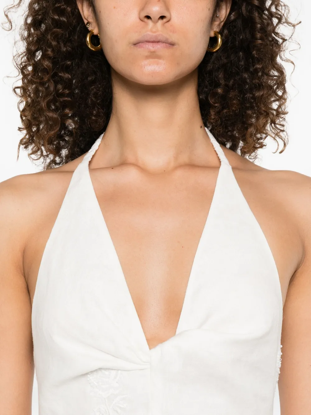 Юбка А-силуэта с вырезом-халтер, вышитыми деталями, длиной миди