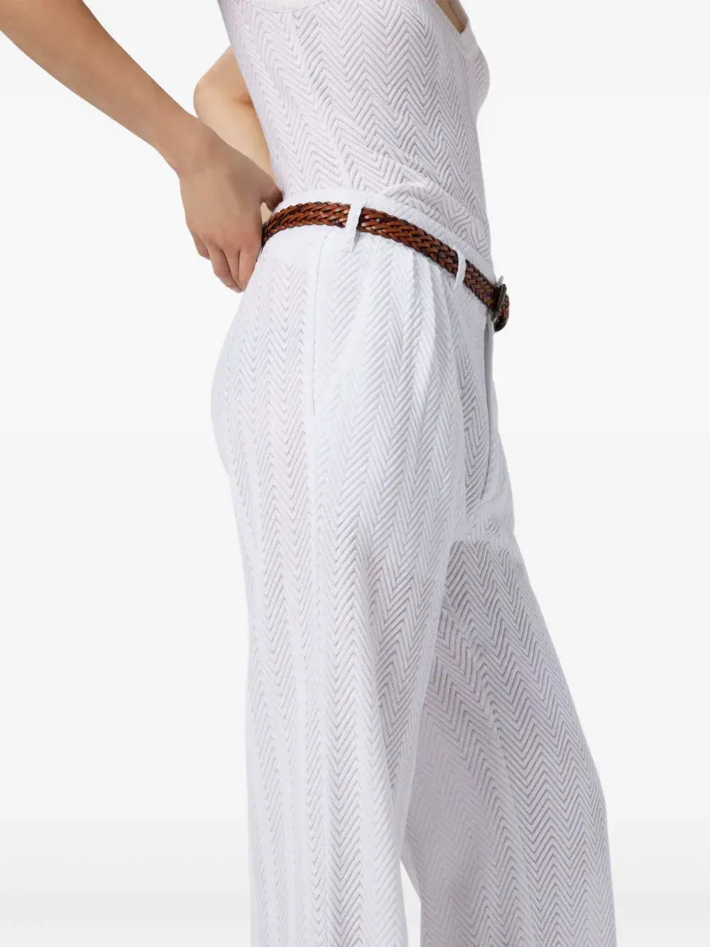 Белый, с узором «елочка», высокой талией, складками спереди и карманами. Полученный вами товар может немного отличаться от представленного на фотографии. Это связано с тем, что все изделия Missoni изготавливаются вручную.