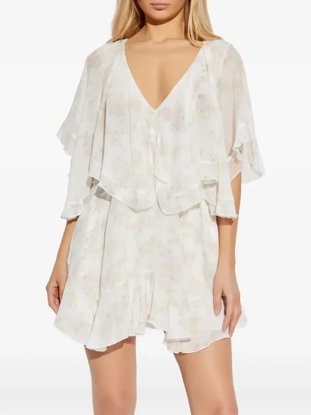 Платье Avaline с оборками и цветочным принтом LoveShackFancy, белый