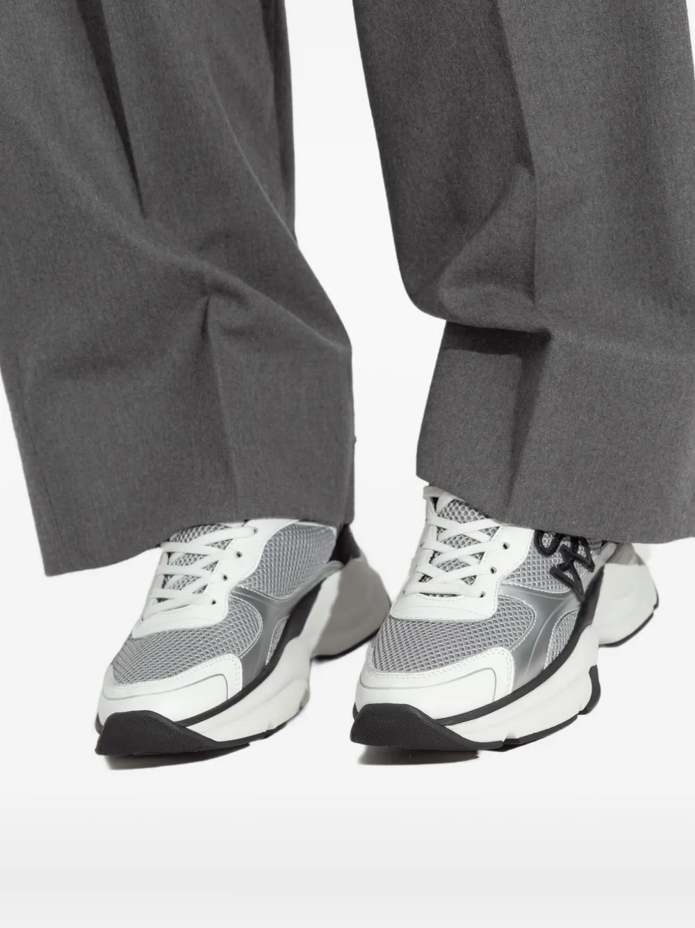 Белые/серебристые, шнуровка спереди, круглый носок, фирменная стелька, резиновая подошва