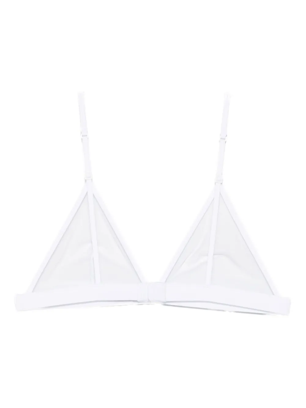 Белая сетчатая ткань треугольной формы, регулируемые лямки. Напоминаем, что это изделие следует примерять поверх собственной одежды.