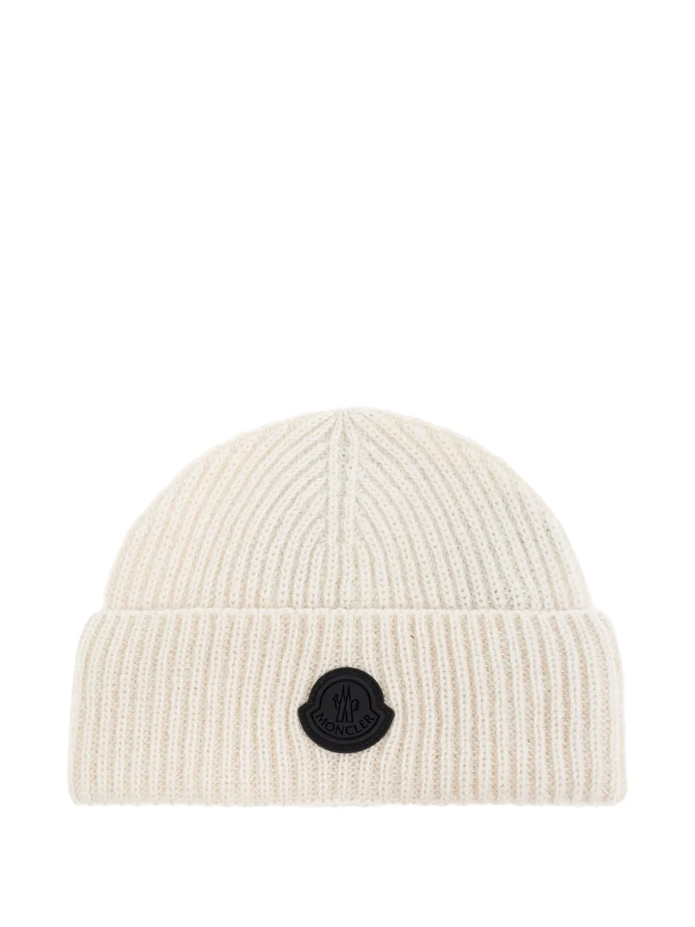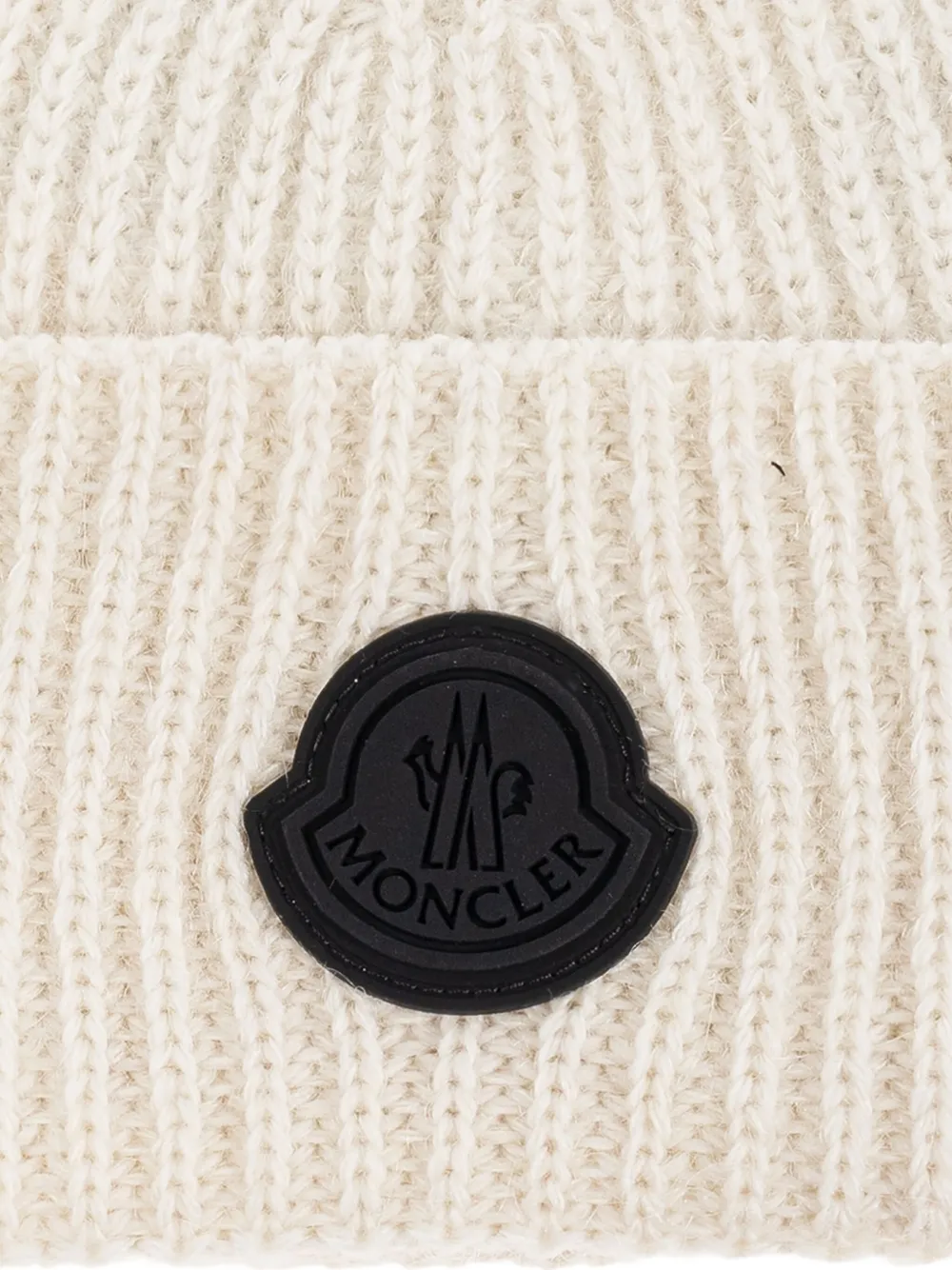 Шапка бини в рубчик с нашивкой-логотипом MONCLER, белый