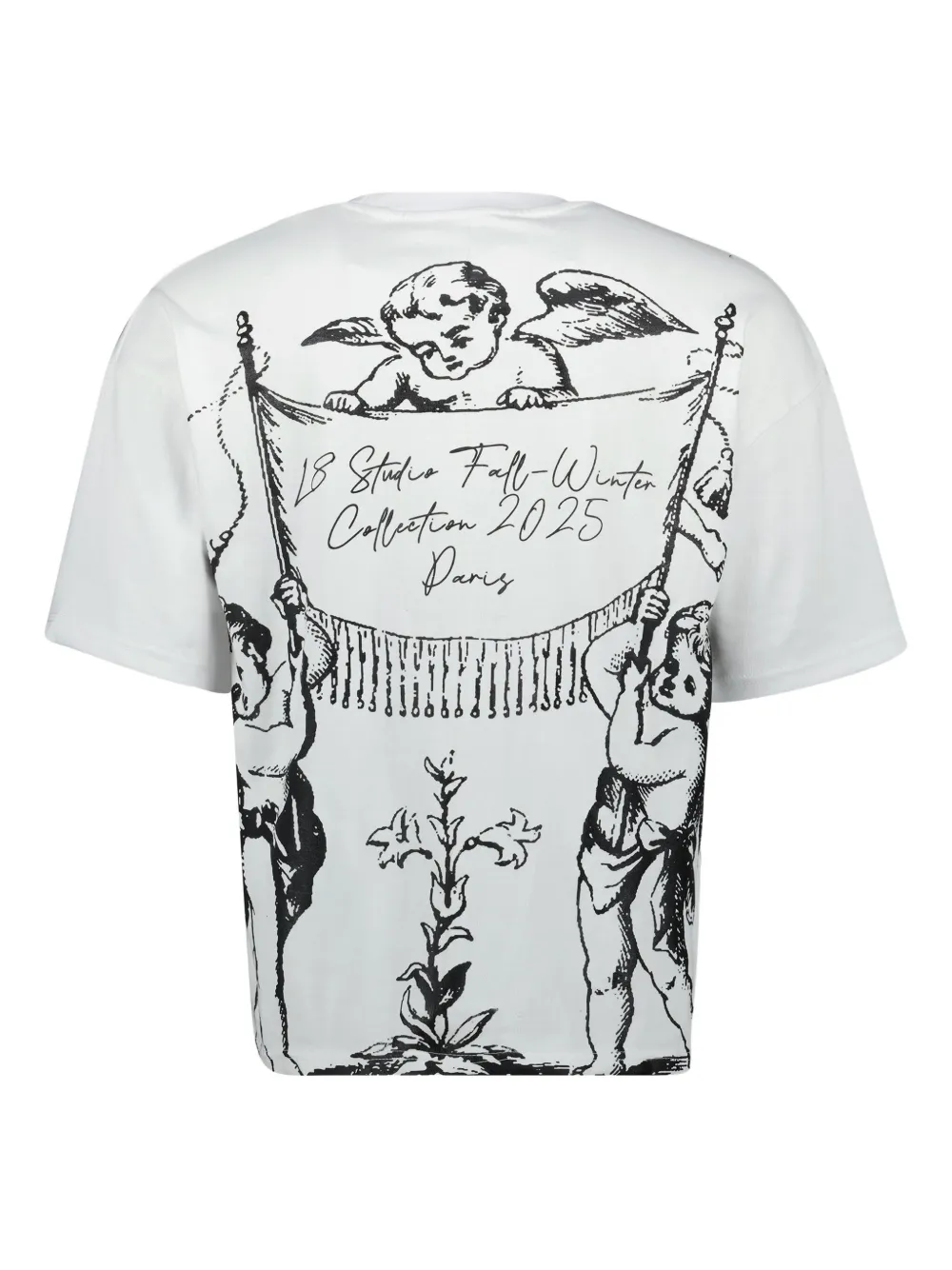Белый принт с херувимом, короткие рукава, круглый вырез