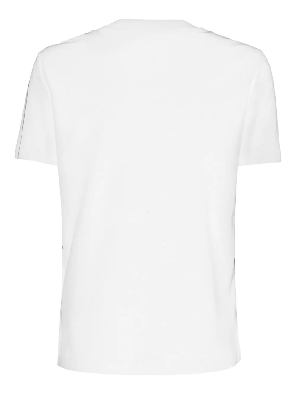 Белый с короткими рукавами, круглым вырезом, логотипом, украшением из кристаллов, хлопок